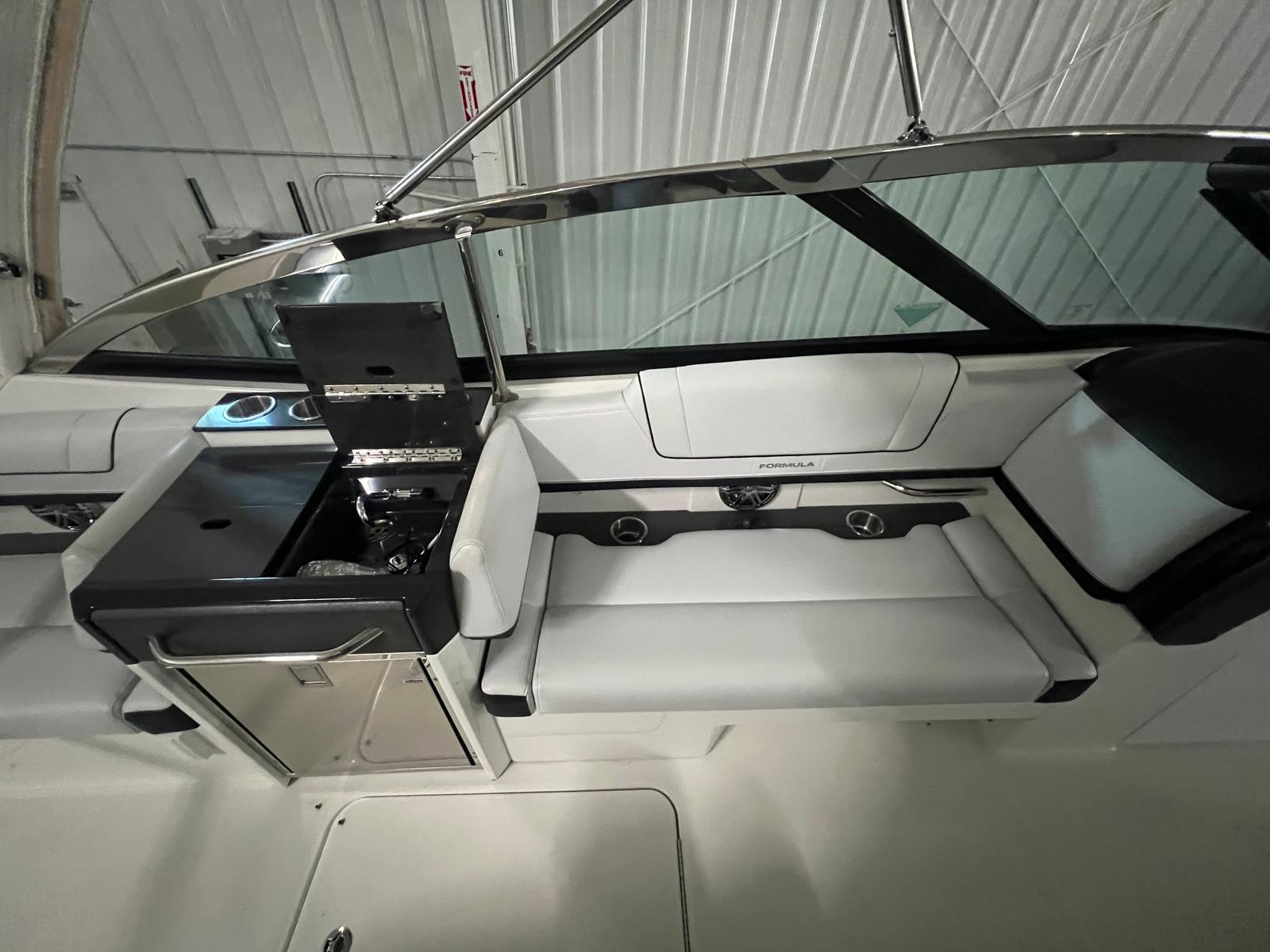 Owning the Formula 330 CBR cruiser means embracing a lifestyle of fun, relaxation, and adventure. The spacious layout is perfect for entertaining friends and family, offering ample seating and room to move about. The comfortable cabin and climate control features ensure everyone stays cozy, whether you’re escaping the summer heat or enjoying a crisp autumn evening on the water. The premium sea grass flooring in the cockpit adds both style and practicality, making cleanup after a day of fun effortless. Socializing is a breeze on this cruiser boat for sale, with plenty of space for dining, lounging, and enjoying the company of loved ones. The bimini top and camper enclosure provide flexible options for sun and shade, so you can tailor your experience to suit the weather and your preferences. Whether you’re hosting a sunset cocktail party or embarking on a weekend adventure, the Formula 330 CBR delivers the perfect setting for memorable moments.