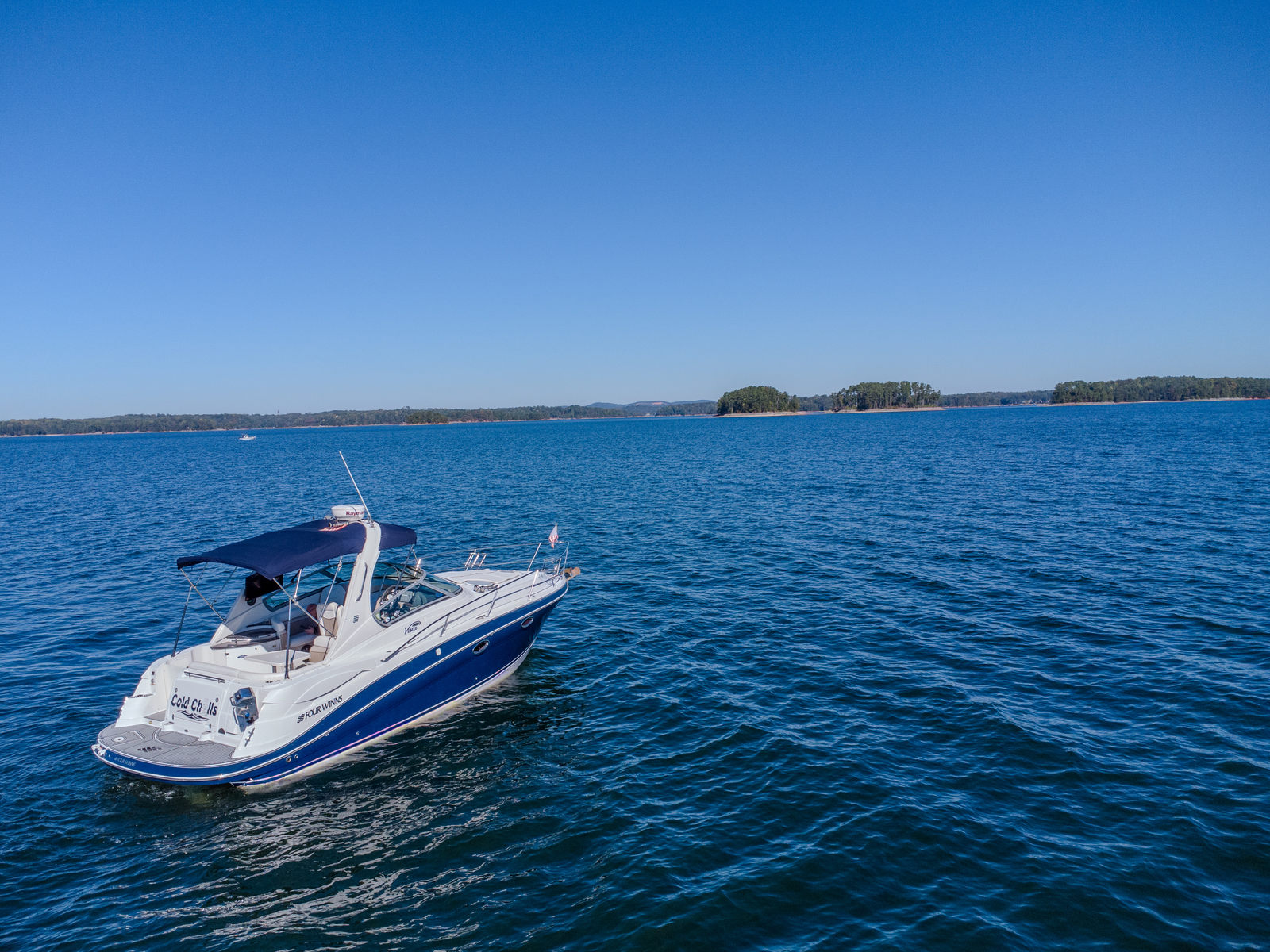 Below deck, the cabin offers a welcoming retreat that sleeps four, complete with a convertible dinette, galley, AC/Heat, and VacuFlush head. Whether you’re out for a day on the water or an overnight getaway, this Vista has everything you need.