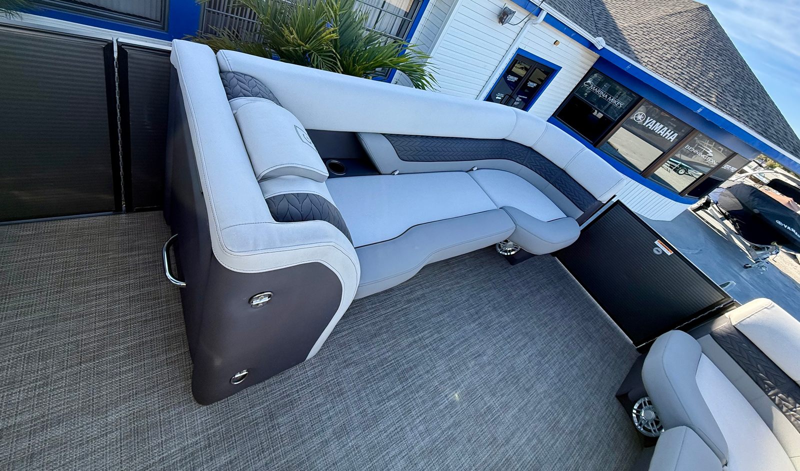 In addition to its recreational appeal, the Godfrey 255 SB offers practical benefits that make ownership easy and enjoyable. The spacious deck provides plenty of room for coolers, gear, and water toys, so you can bring everything you need for a day on the water. The pontoon’s design makes docking and maneuvering straightforward, even in tight spaces, so you can spend less time worrying and more time having fun.Fuel efficiency is another key advantage of the Godfrey 255 SB. The 300-horsepower engine is engineered for optimal performance without sacrificing economy, allowing you to enjoy longer outings without frequent refueling stops. The boat’s durable construction and quality materials ensure that maintenance is straightforward, so you can focus on enjoying your time on the water.