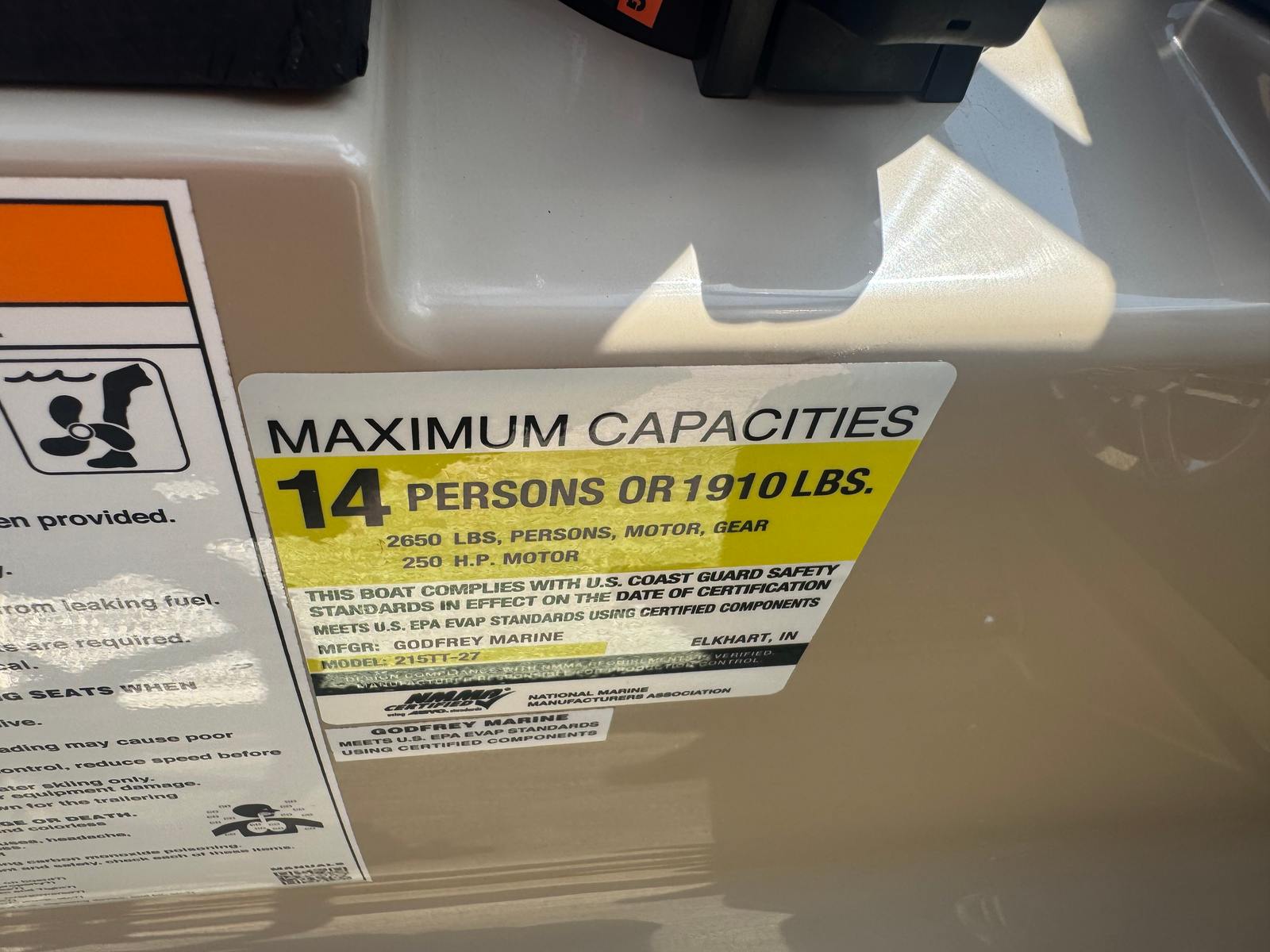 The Godfrey AP 215 SBC pontoon boat shines in a variety of scenarios. It’s perfect for family outings, offering a safe and comfortable environment for children and adults alike. The spacious deck is ideal for hosting gatherings, birthday parties, or holiday celebrations on the water. Anglers will appreciate the stability and roominess for casting lines and storing gear, while those seeking relaxation can enjoy sunbathing, reading, or simply taking in the views.This pontoon boat is also well-suited for luxury getaways, providing a stylish and inviting space to escape the everyday and indulge in leisure. Whether you’re exploring new waterways, anchoring at your favorite spot, or enjoying water sports, the Godfrey AP 215 SBC delivers the versatility and performance you need for every adventure.