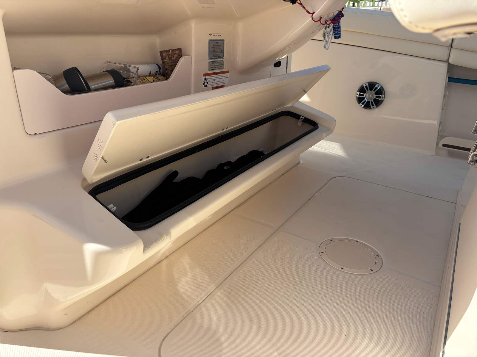 Powering the Grady-White Canyon 336 are twin engines, delivering a combined 850 horsepower. This formidable setup ensures exhilarating acceleration, impressive top speeds, and confident handling in a variety of sea conditions. The dual-engine configuration not only enhances performance but also provides added reliability and peace of mind for longer journeys. Whether you are navigating coastal waters or heading offshore, the Canyon 336’s responsive handling and smooth ride make every trip enjoyable and safe. The robust powertrain is designed for those who demand both speed and efficiency, making this center console boat a top contender for serious boaters.