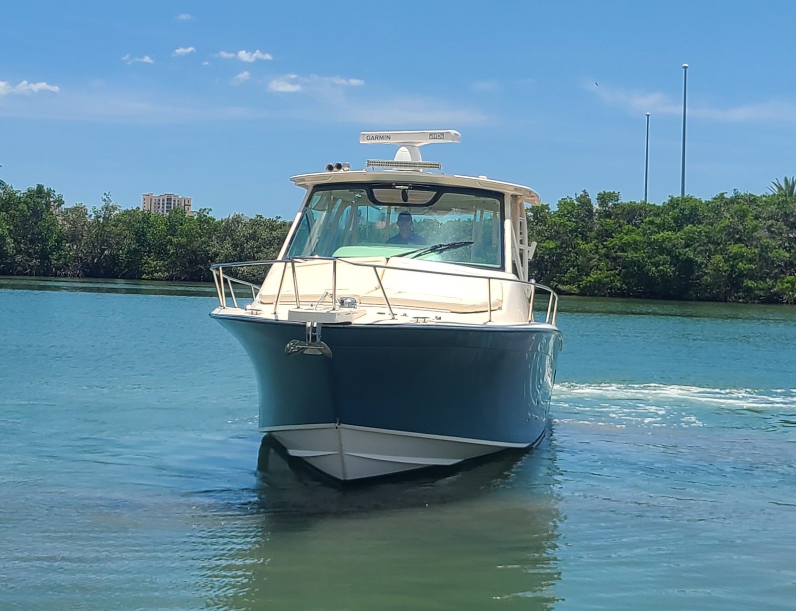 Powered by twin engines delivering a combined 850 horsepower, the Grady-White Express 330 offers exhilarating performance and responsive handling. The dual-engine setup ensures smooth acceleration, impressive top speeds, and enhanced maneuverability, whether you’re navigating tight marinas or heading out to your favorite fishing spot. With only 195 engine hours, these motors promise years of dependable service, giving you confidence every time you set out on the water. The Express 330’s advanced hull design further contributes to a stable, dry ride, even in choppy conditions, making it a standout among fishing boats for sale.