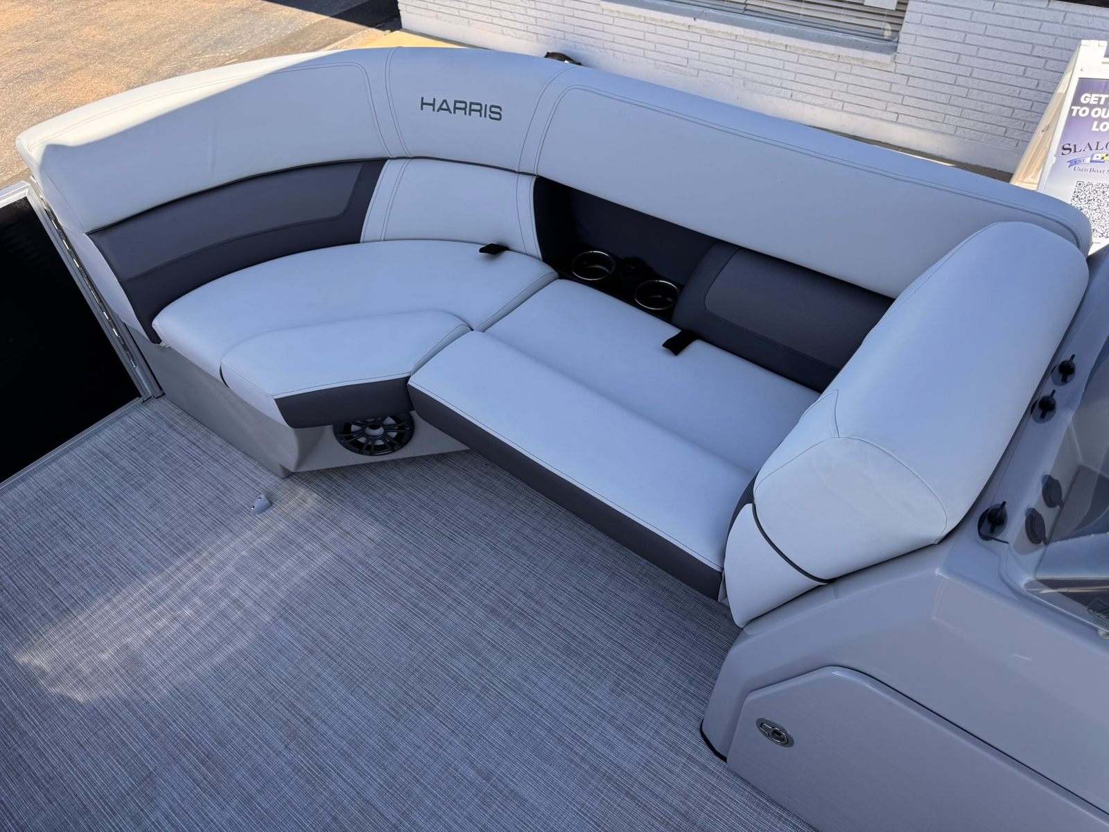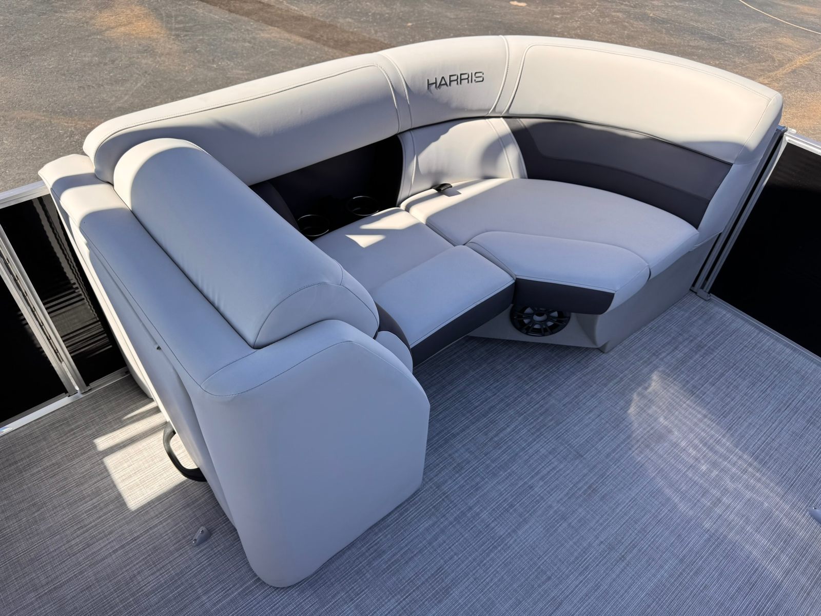 Beyond its recreational appeal, the Harris CX 210 is designed with practicality in mind. The pontoon’s efficient engine and manageable size make it easy to dock, maneuver, and transport, reducing the stress often associated with boat ownership. The generous storage compartments help keep the deck clutter-free, allowing you to organize your gear and maintain a tidy environment. Fuel efficiency is another key advantage, enabling you to enjoy longer outings without frequent stops at the marina.The sturdy construction and reliable performance of this Harris boat for sale mean you can count on it for a variety of activities, from leisurely cruises to more active pursuits. Whether you’re heading out for a day of fishing, enjoying water sports, or simply relaxing with friends, the CX 210 adapts to your needs with ease. Its user-friendly controls and intuitive layout make it accessible for boaters of all experience levels, ensuring that every trip is enjoyable and stress-free.