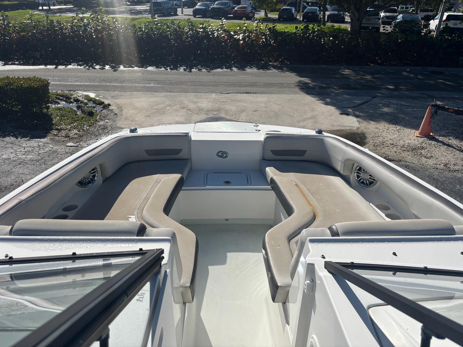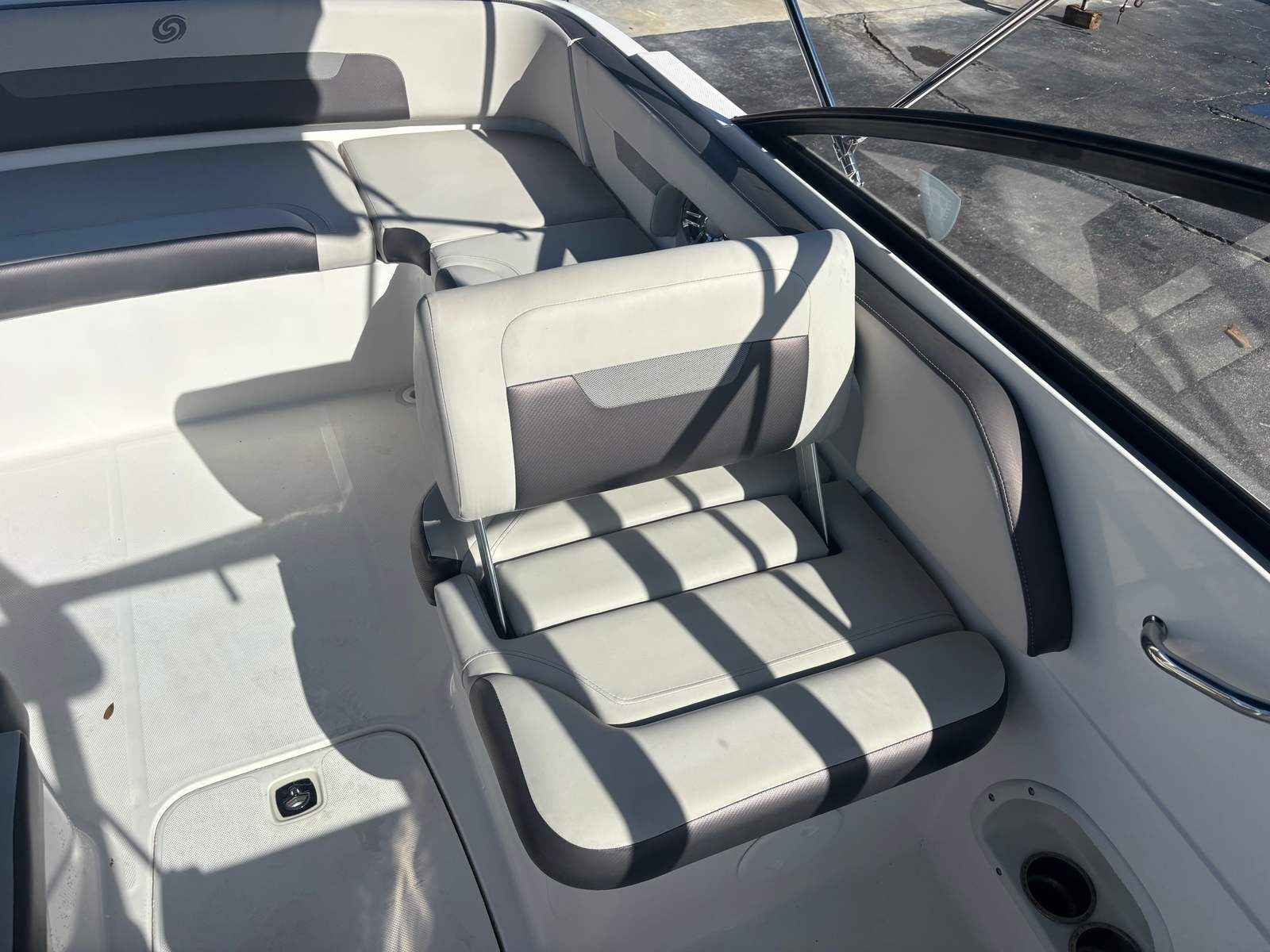 Powering this Hurricane 235 SD is a single engine with 200 horsepower and just 85 engine hours, ensuring reliable performance and plenty of life left for future adventures. The robust engine delivers impressive acceleration and responsive handling, allowing you to glide across the water with confidence. Whether you are towing a wakeboarder, exploring new waterways, or heading out for a sunset cruise, the 235 SD’s powertrain provides the perfect balance of speed and efficiency. The deckboat’s hull design enhances stability and control, making it easy to navigate tight marinas or open water with equal ease.