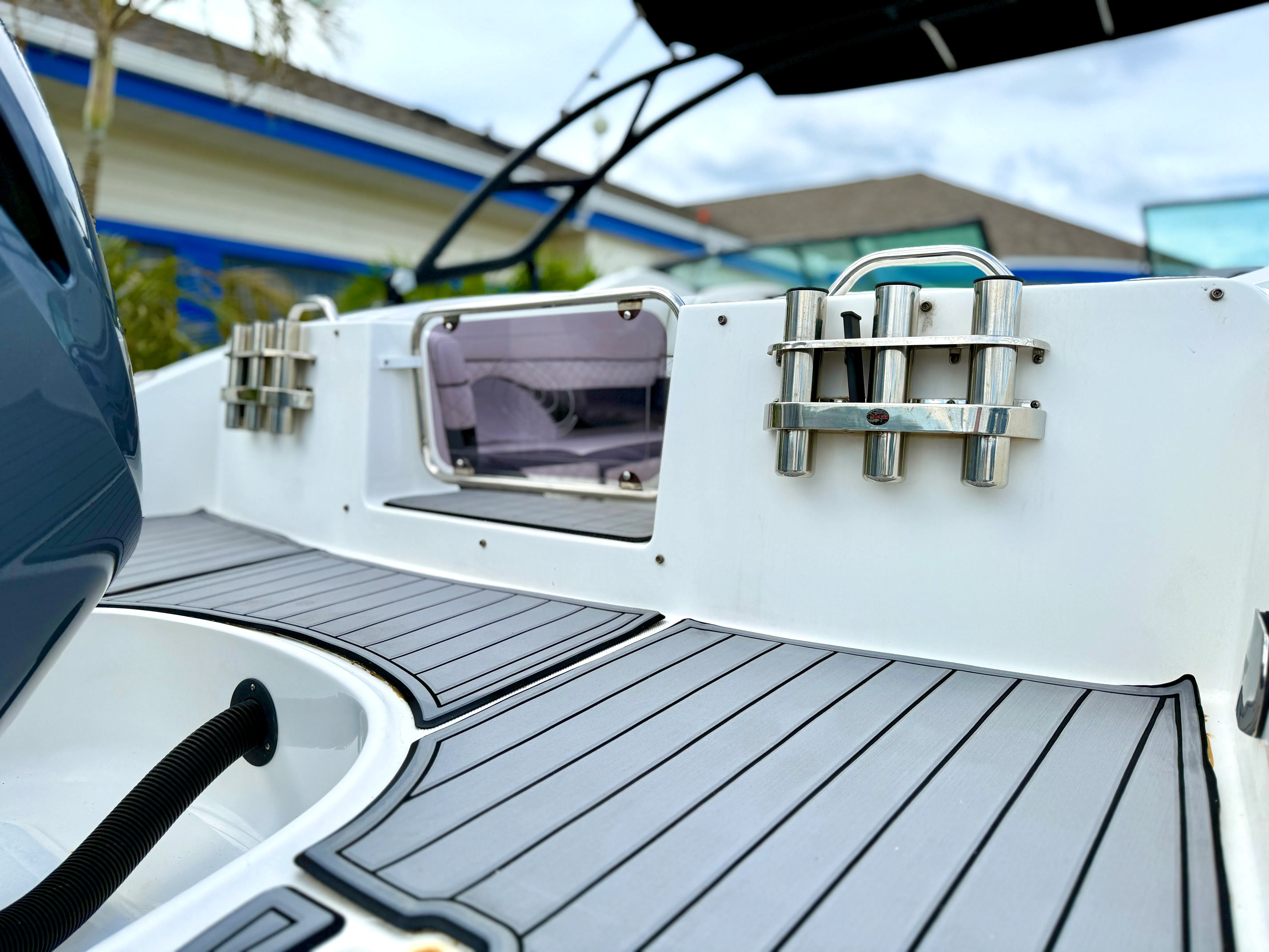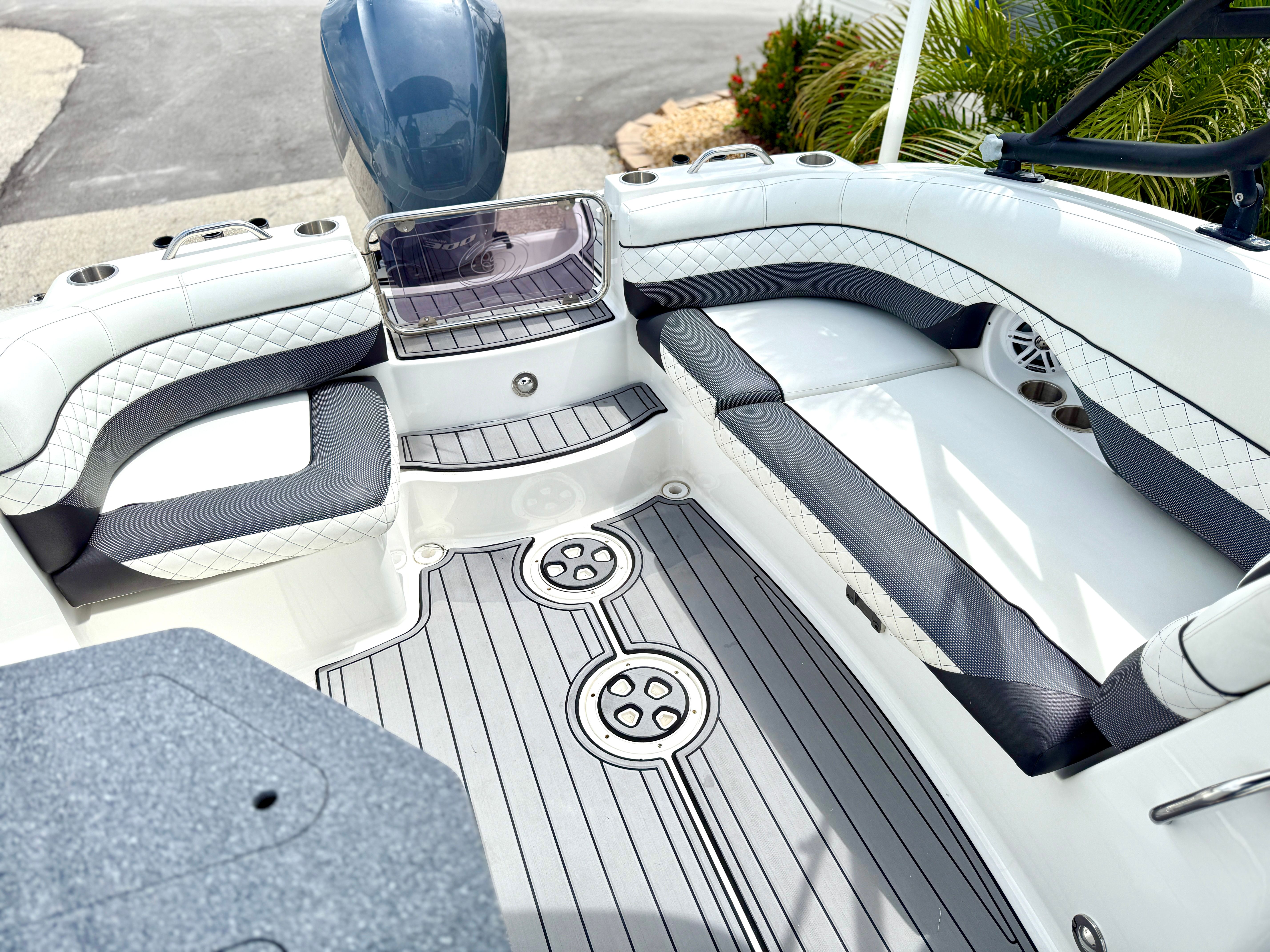 This Hurricane boat for sale truly shines in a variety of scenarios. Imagine taking your family out for a day of swimming, sunbathing, and picnicking on the open water. The spacious deck and comfortable seating make it easy to relax and enjoy each other’s company. For fishing enthusiasts, the Sundeck 2690 OB offers plenty of room to cast lines and store your catch, while the powerful engine ensures you can reach your favorite fishing spots with ease. If you’re looking for excitement, the boat’s performance capabilities make it perfect for towing water toys or exploring new waterways. Whether you’re seeking a luxurious escape or an action-packed adventure, this Dual Console boat adapts to your needs and delivers unforgettable experiences.