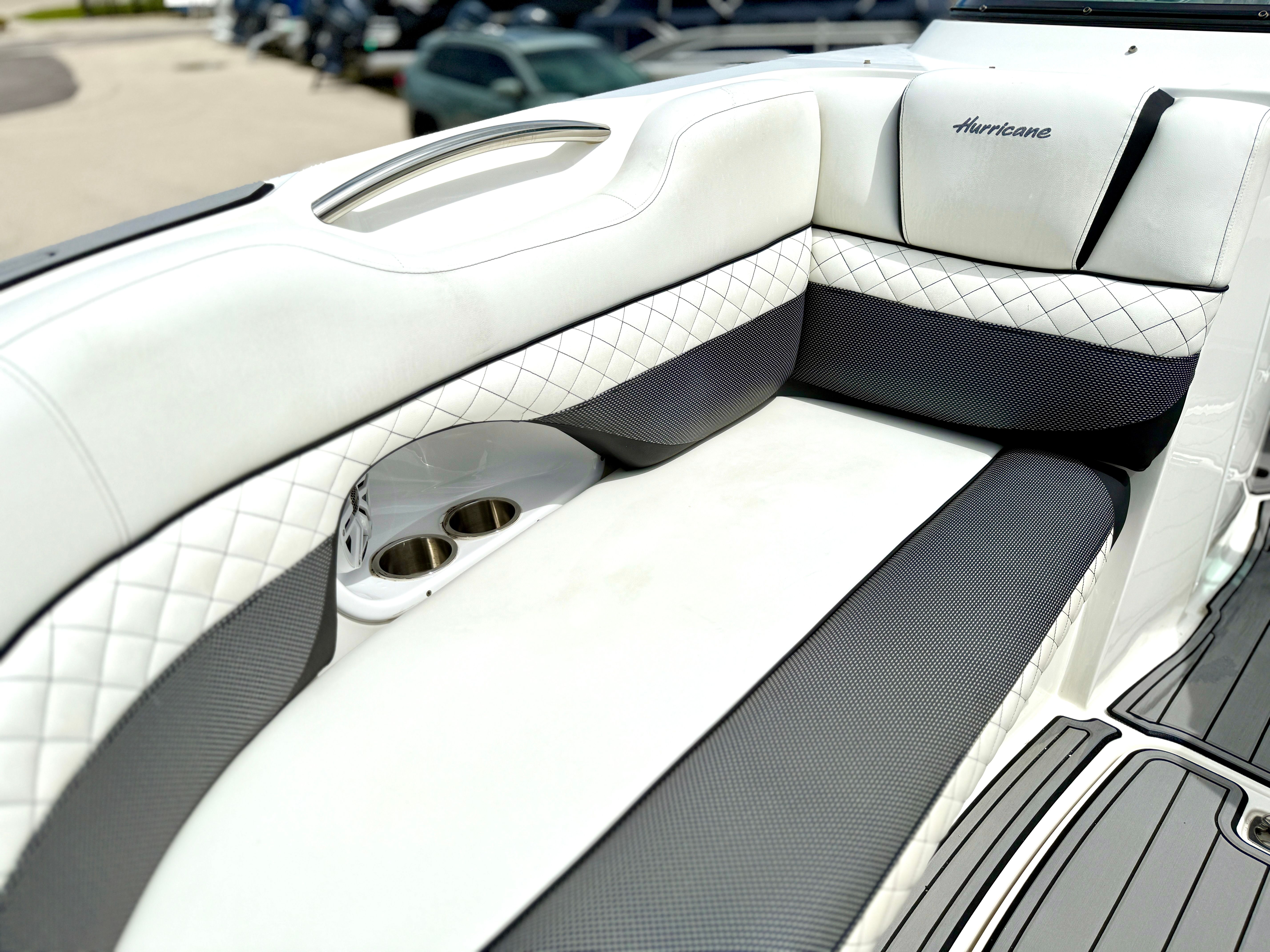 Powering the Hurricane Sundeck 2690 OB is a robust single engine with an impressive 300 horsepower. This setup ensures smooth acceleration, reliable handling, and plenty of power for towing water toys or navigating open waters. With 181 engine hours, this boat has been lightly used and is ready to deliver many more seasons of dependable performance. The combination of Hurricane’s renowned hull design and the powerful outboard engine means you’ll enjoy a stable, responsive ride, whether you’re cruising along the shoreline or heading out for a day of adventure.