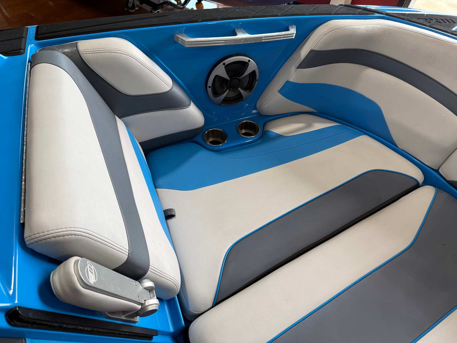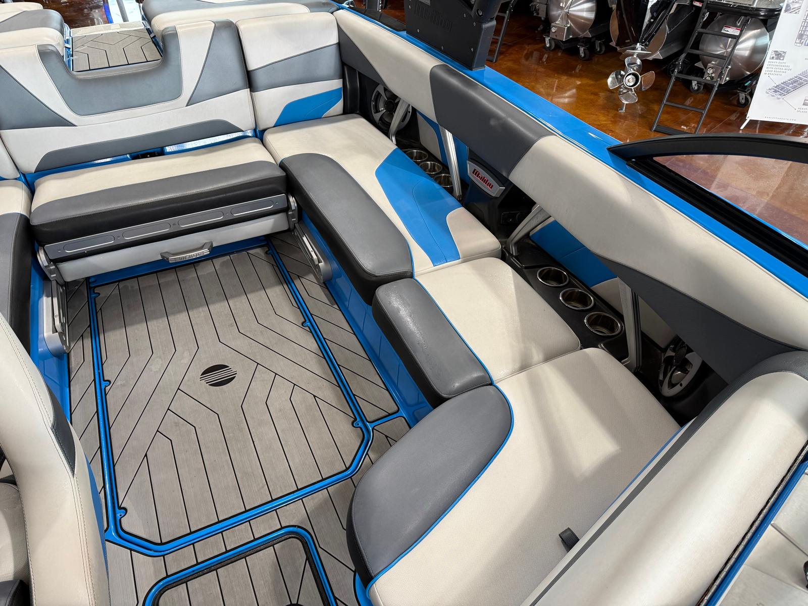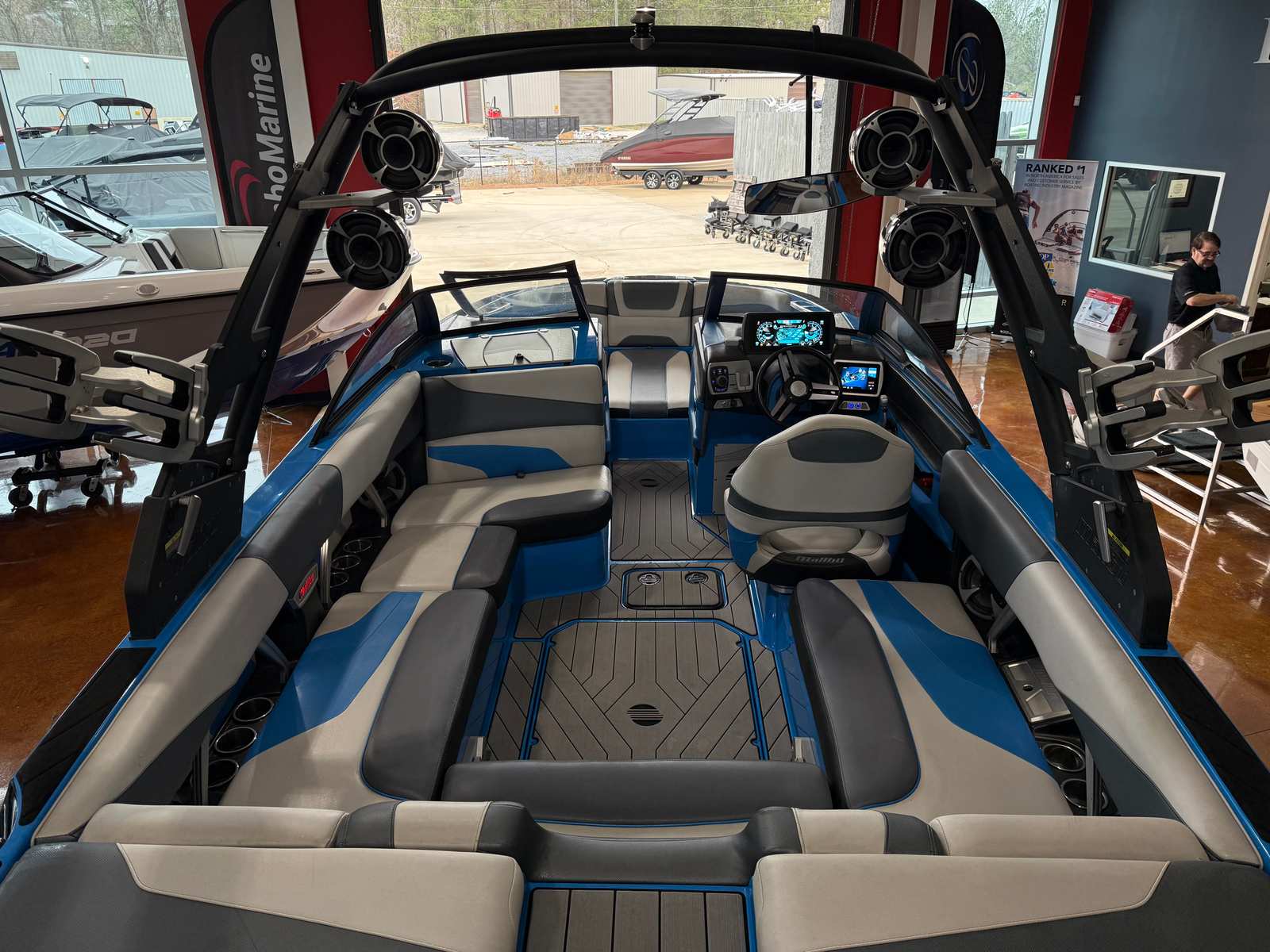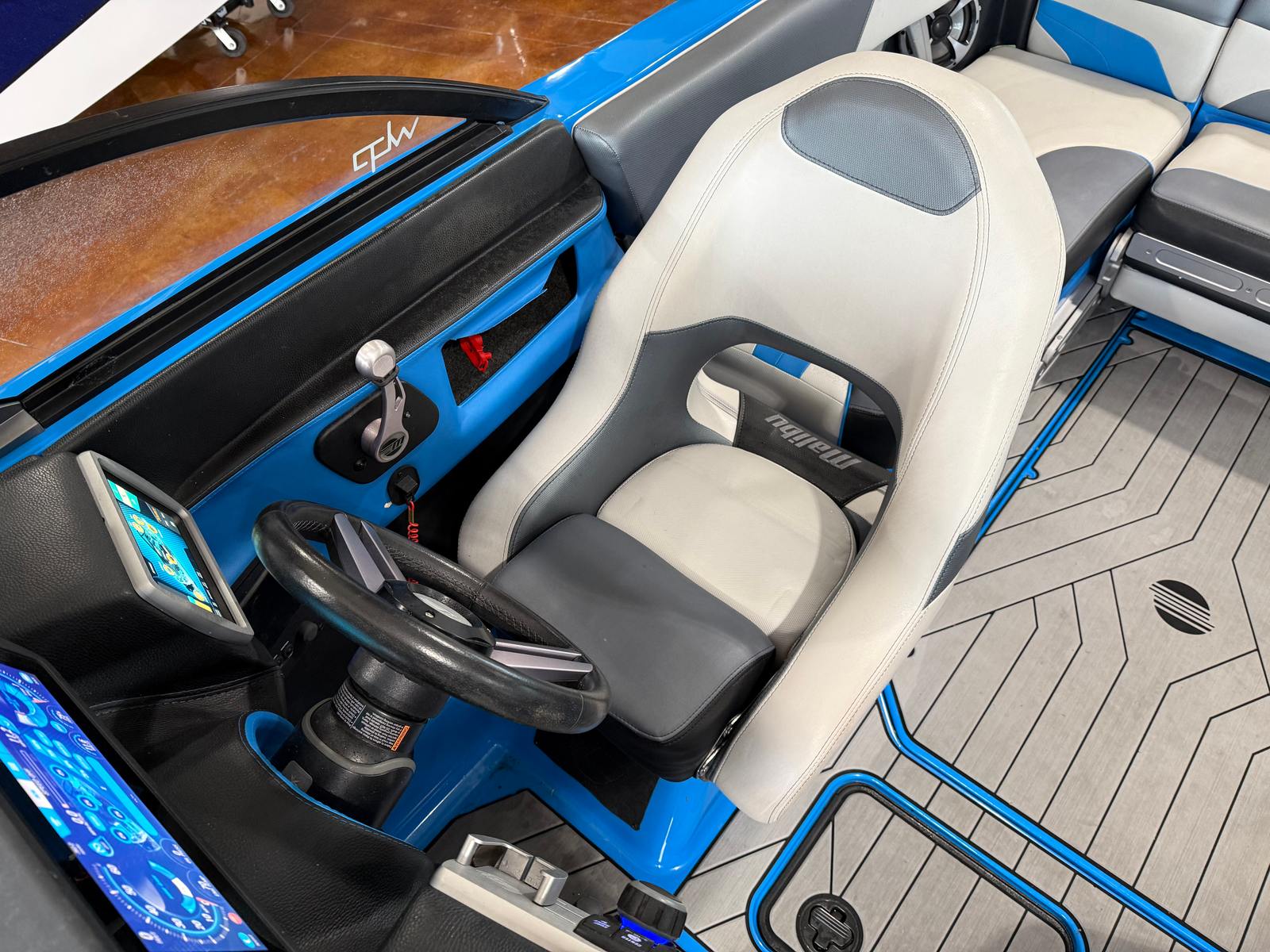 The Malibu Wakesetter 22 MXZ is packed with features that enhance both performance and comfort. Its 22-foot length offers ample space for passengers to relax and enjoy the ride, while the open bow design maximizes seating and social areas. The boat’s innovative hull shape is engineered to produce world-class wakes and waves, perfect for wakeboarding, wakesurfing, and skiing. The intuitive helm layout puts all controls within easy reach, allowing the captain to focus on the fun. With its stylish exterior and thoughtfully designed interior, this Malibu boat for sale is as visually striking as it is functional.