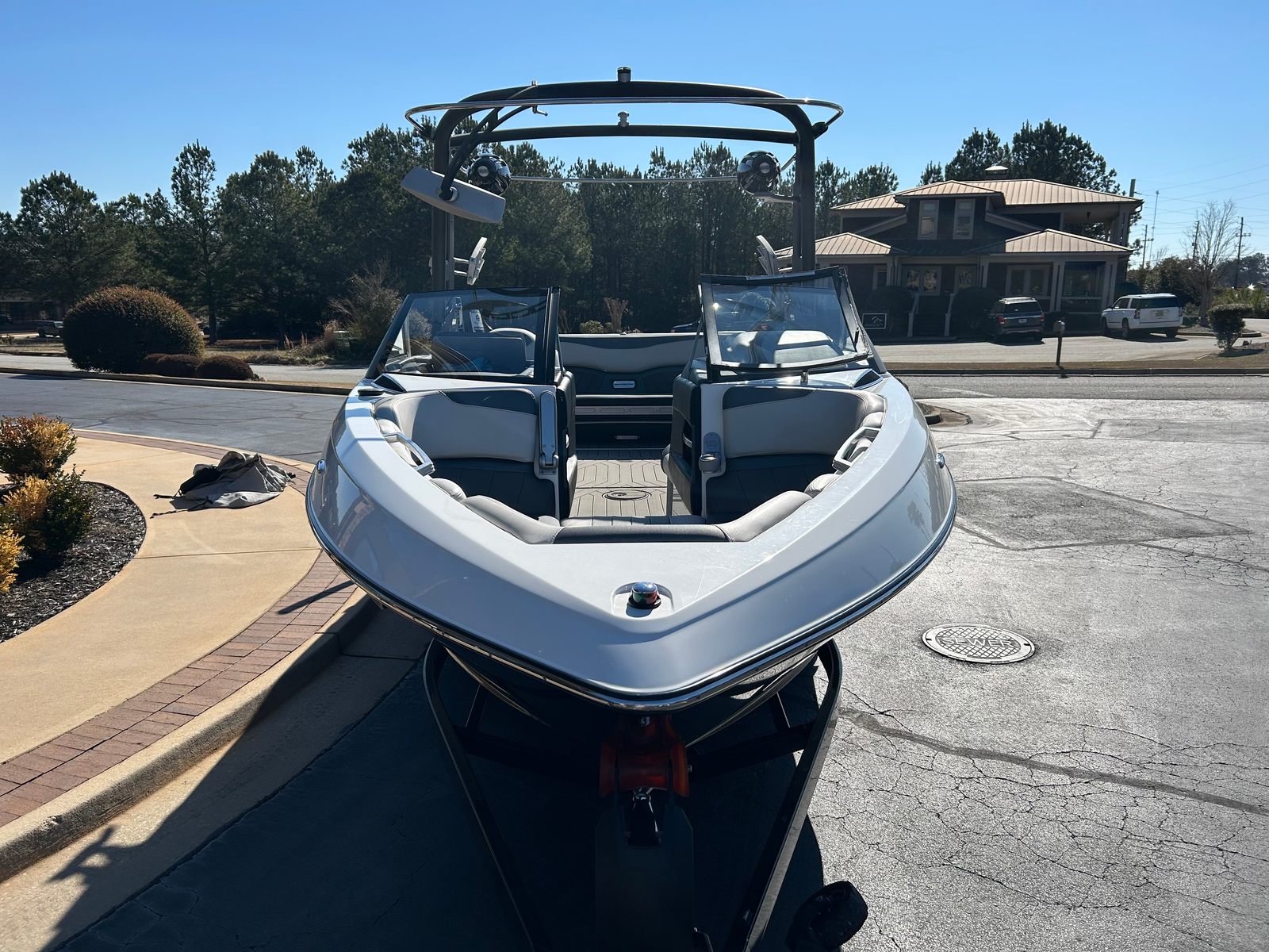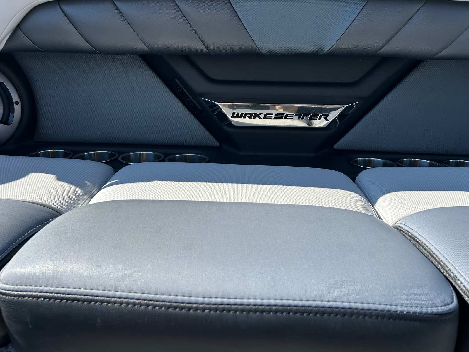 At the heart of this Malibu Wakesetter 25 LSV is a powerful single engine boasting an impressive 450 horsepower. This robust engine ensures exhilarating acceleration, smooth cruising, and the ability to create massive wakes and waves for all your favorite water sports. Whether you are towing wakeboarders, skiers, or tubers, the Wakesetter 25 LSV’s engine delivers the torque and responsiveness needed for an unforgettable ride. The advanced hull design further enhances performance, providing stability and precision handling even in choppy conditions. With this Ski & Wakeboard boat for sale, you can expect a thrilling and reliable experience every time you hit the water.