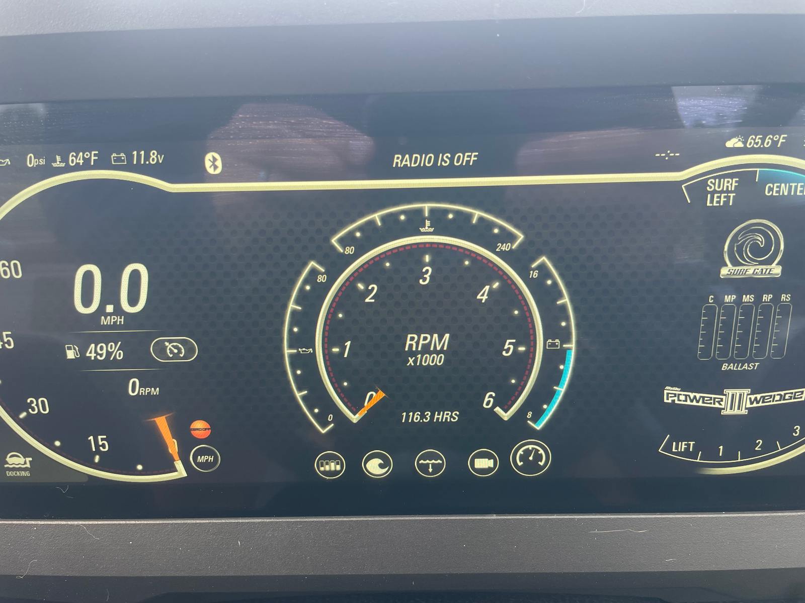 Under the hood, the 2023 Malibu Wakesetter 26 LSV is powered by a single engine delivering an impressive 600 horsepower. This powerhouse setup provides exhilarating acceleration and smooth handling, whether you are carving through wakes or towing multiple riders. The engine’s 117 hours reflect its careful use and maintenance, ensuring you get a reliable and high-performing Ski & Wakeboard boat for sale. Experience the thrill of instant throttle response and the confidence of knowing you have the muscle to create perfect wakes for skiing, wakeboarding, or wakesurfing.