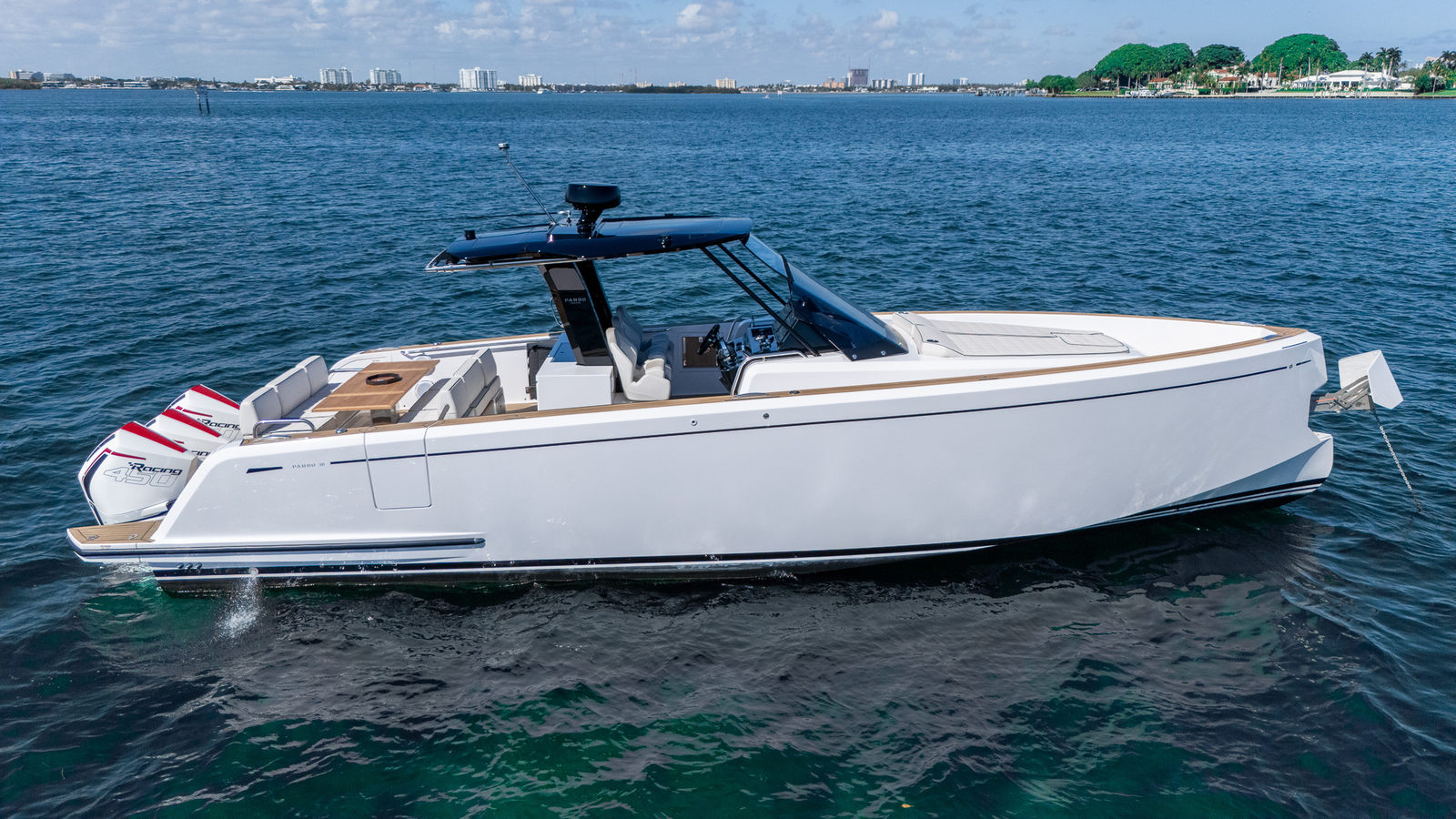 The Pardo Yachts 38 is as practical as it is stylish. Its walkaround design makes docking and maneuvering a breeze, even in tight marinas or busy harbors. The generous storage compartments ensure you have plenty of space for all your boating essentials, from water toys to picnic supplies. The efficient layout allows for easy access to all areas of the boat, making maintenance and cleaning simple and straightforward.Fuel efficiency is another highlight of this model, allowing you to spend more time enjoying the water and less time refueling. The durable construction and quality materials ensure that your investment will stand the test of time, providing years of reliable service and enjoyment.