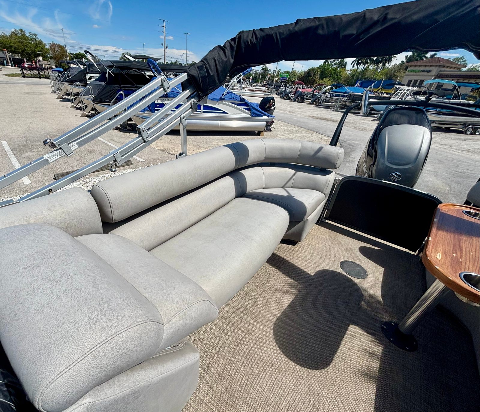 The Premier 270 Intrigue is designed with both comfort and convenience in mind. Its spacious deck layout offers plenty of room for family and friends to relax, socialize, and enjoy the water. The high-quality construction and attention to detail are evident throughout, from the plush seating to the stylish helm. Special features of this pontoon boat include a powerful 350 HP engine, a generous 27.4-foot length, and a single-engine configuration that balances performance and efficiency. The boat’s used condition means you can enjoy premium features at a more accessible price point, making it an excellent value for those seeking a Premier boat for sale.