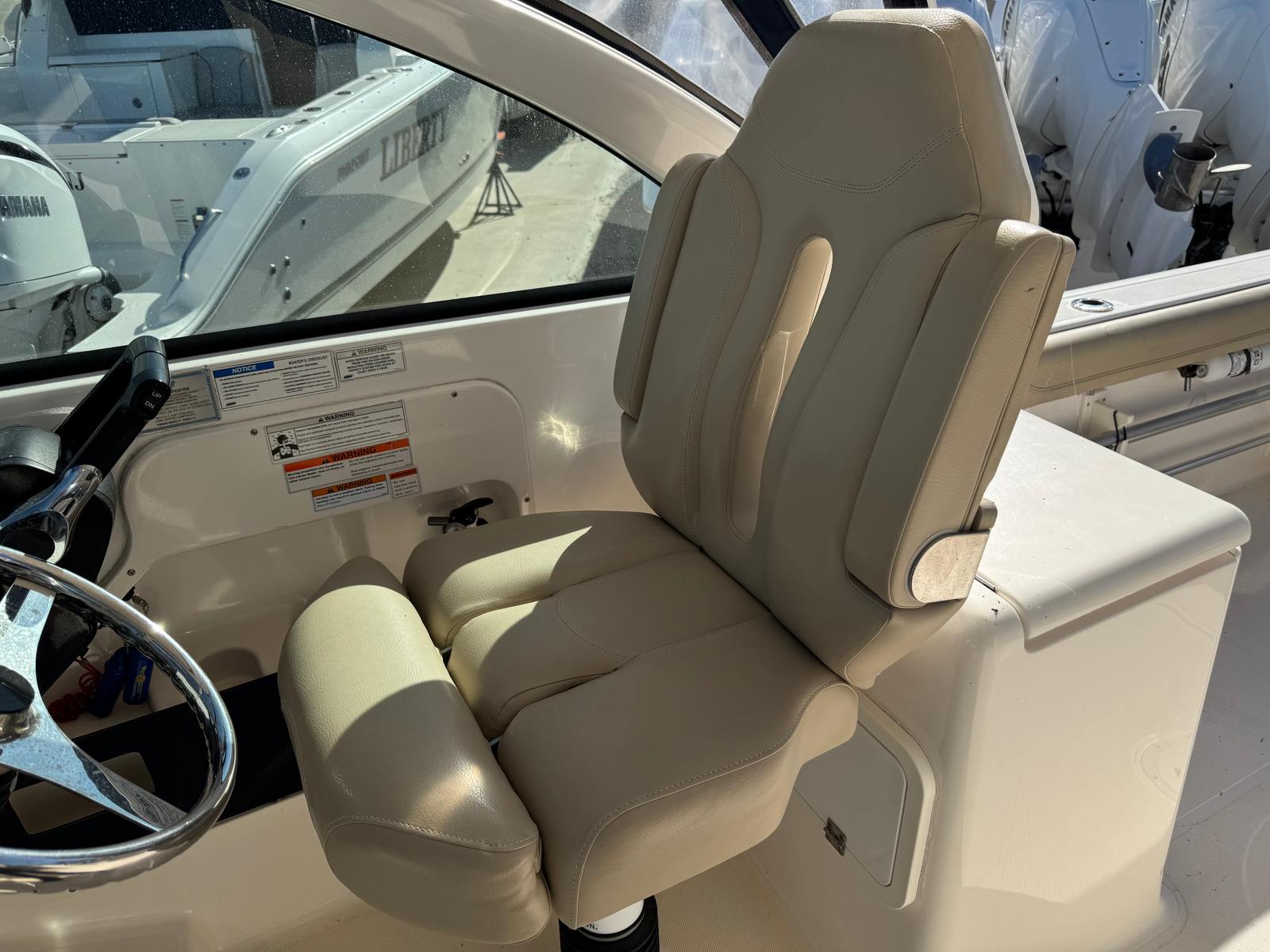The Pursuit DC 265 is packed with features that enhance both functionality and enjoyment. Its dual console layout offers flexibility for a range of activities, from fishing to entertaining guests. The spacious cockpit and bow seating areas provide comfortable spaces for relaxation and socializing, while the ergonomic helm ensures easy control and visibility. Storage compartments are thoughtfully integrated throughout the boat, allowing you to stow gear, supplies, and personal items securely and conveniently. The high-quality materials and finishes reflect Pursuit’s dedication to durability and style, ensuring that this boat remains a standout on the water for years to come.