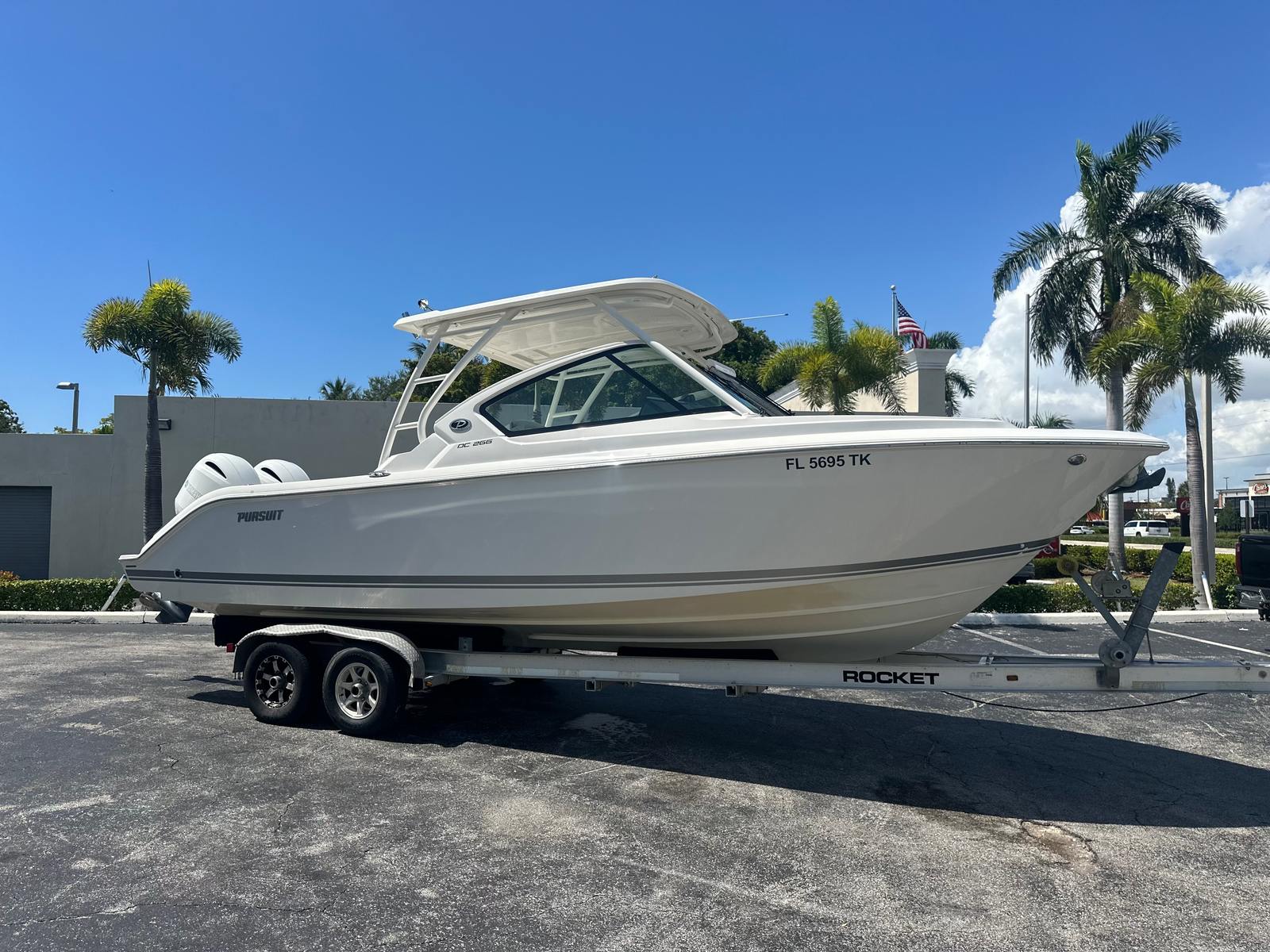 Turnkey and ready for delivery, this 2023 Pursuit DC 266 is the perfect dual console for family cruising, or fishing. Powered by reliable twin Yamaha 200’s with 255 hours, she offers smooth performance and confident handling in all conditions. Finished in a clean white hull with an elegant Platinum boot stripe, this DC 266 stands out with timeless style and classic Pursuit lines. The spacious layout includes plush bow seating, a convertible aft lounge, portside head compartment, and ample storage throughout—ideal for long days on the water.