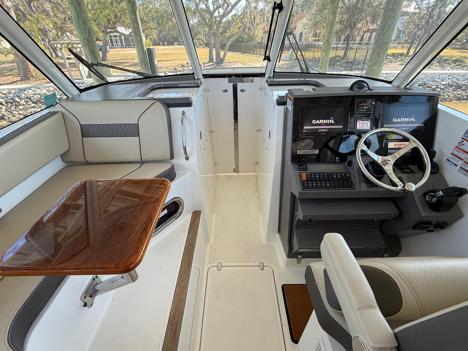 Check out this beautiful 2020 Pursuit 326 DC loaded with all the right features and options freshly serviced and ready to go! This one owner boat has been lift kept under a covered dock and was loaded up from the factory with all the options that are so highly sought after! Generator, Air Conditioning, Electric Sunshade, Joystick, Autopilot, Radar, Bowthruster and on and on!!! This boat only has 368 hours of use on the Yamaha 300's and has been well maintained! Full List of Factory Options below:
