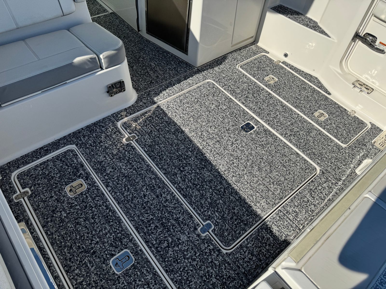This Pursuit boat for sale is as practical as it is enjoyable. The dual console configuration makes docking and maneuvering straightforward, even for less experienced boaters. Ample storage compartments keep your belongings organized and out of the way, while the well-designed helm offers excellent visibility and control. The boat’s efficient engines provide a balance of power and fuel economy, allowing you to spend more time on the water and less time at the fuel dock. Whether you are planning a weekend getaway or a quick afternoon escape, the Pursuit DC 326 is equipped to handle it all with ease.