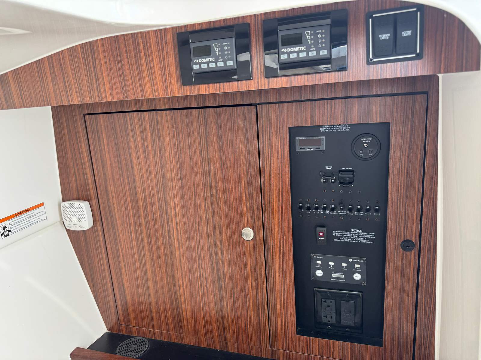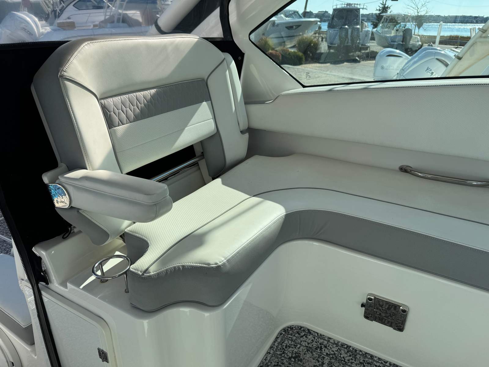 The Pursuit DC 326 is designed with both luxury and practicality in mind. Its dual console layout offers exceptional versatility, allowing for seamless transitions between cruising, fishing, and entertaining. The spacious cockpit and bow seating areas provide plenty of room for guests to relax and enjoy the ride. High-quality materials and finishes are evident throughout, from the comfortable seating to the stylish helm station. The boat’s thoughtful design ensures that every inch of space is utilized efficiently, making it easy to move around and access all areas of the vessel.