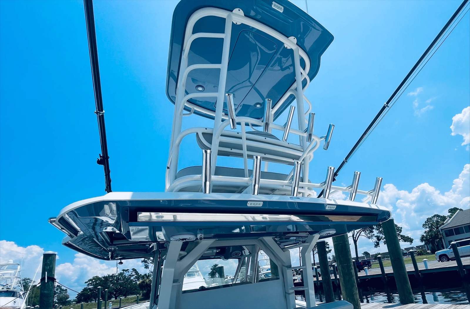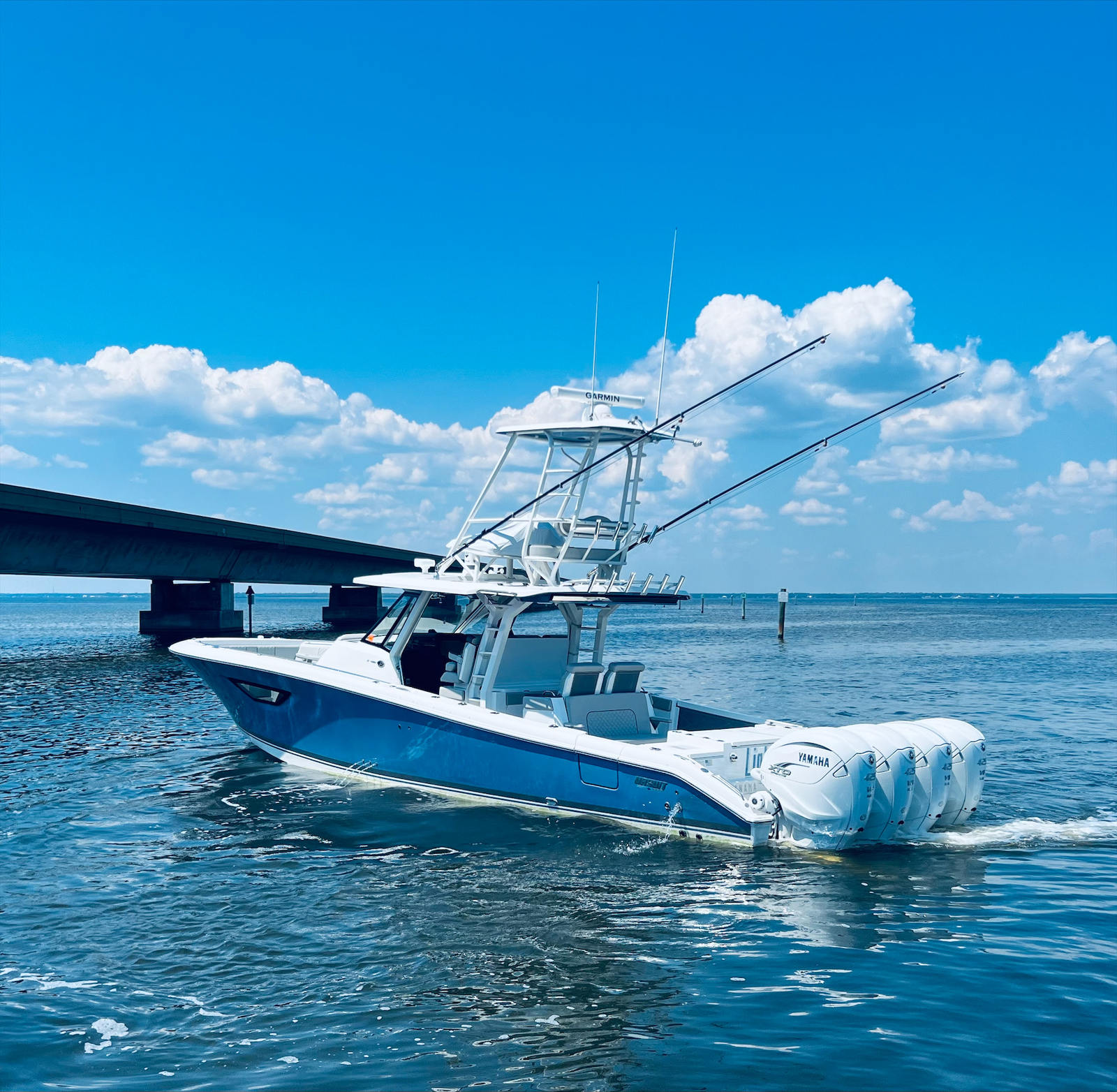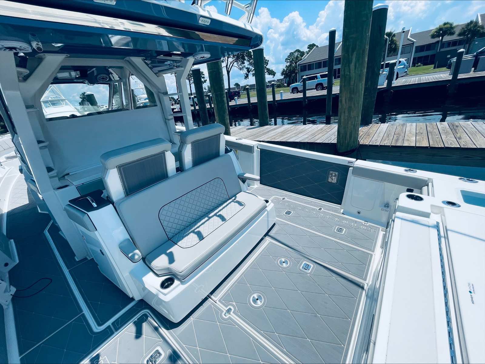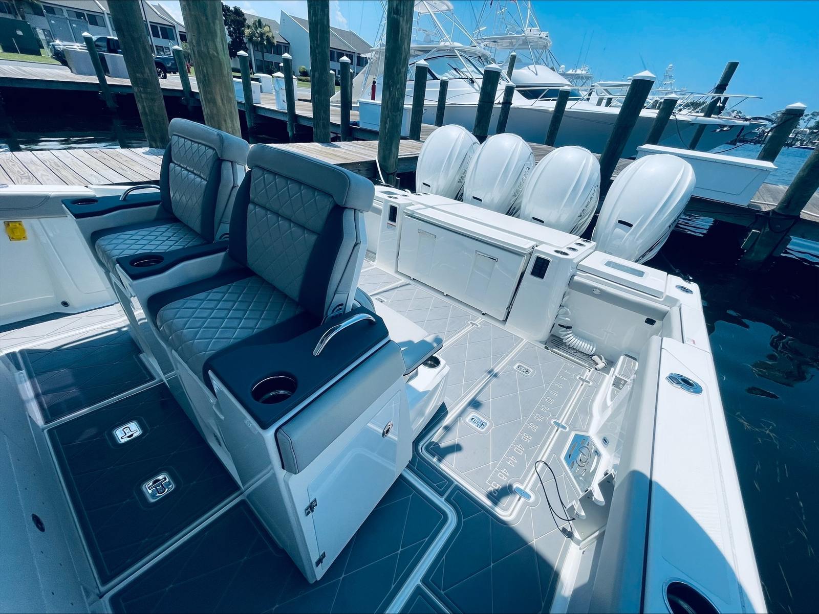Beyond its impressive performance and luxurious features, the Pursuit S 428 Center Console is designed with practicality in mind. The boat’s ample storage compartments make it easy to stow gear, supplies, and personal items, keeping the deck tidy and organized. The advanced helm station and intuitive controls simplify navigation, while the quad-engine setup enhances fuel efficiency and reliability. Docking is effortless thanks to the boat’s responsive handling and maneuverability, allowing you to enjoy more time on the water and less time worrying about logistics. Whether you’re planning a weekend getaway or a spontaneous day trip, this Pursuit boat for sale offers the flexibility and convenience you need for stress-free boating.