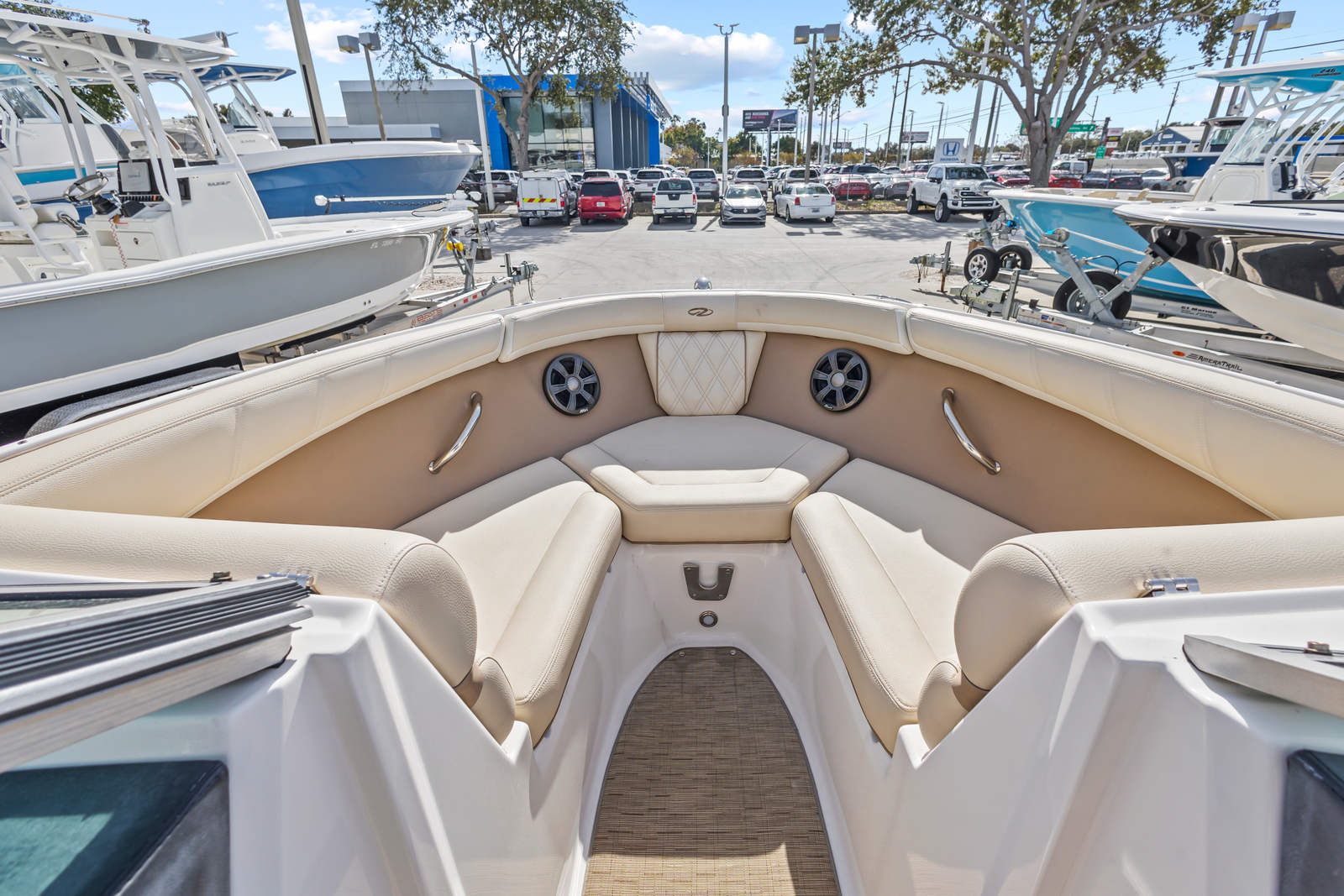 The Regal 21 OBX is packed with features that enhance your boating experience. Its spacious bow seating area invites guests to relax and soak up the sun, while the open cockpit layout ensures everyone has room to move and socialize. The ergonomic helm station offers intuitive controls and excellent visibility, making navigation a breeze for both seasoned captains and newcomers alike. The deep-V hull design contributes to a smooth, stable ride even in choppy conditions, ensuring comfort and confidence on every outing.With its thoughtful layout, the 21 OBX provides plenty of storage options for gear, water toys, and personal belongings. The integrated swim platform makes it easy to access the water for swimming or boarding, while the sturdy construction and attention to detail reflect Regal’s commitment to quality and safety. Every inch of this bowrider is designed to maximize enjoyment and convenience, from the comfortable seating to the smart use of space.
