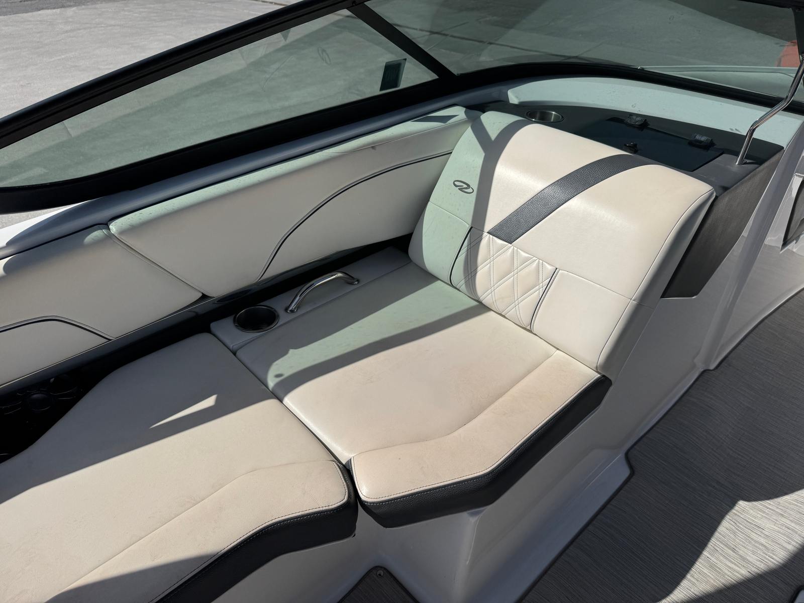 The Regal 2300 RX Surf is packed with features designed to enhance your boating experience. Its spacious bow seating area invites guests to relax and soak up the sun, while the open cockpit layout ensures everyone has a comfortable spot to enjoy the ride. The boat’s innovative hull design contributes to a smooth, dry ride, even when the water gets choppy. The 24-foot length provides generous storage options for gear, water toys, and personal items, keeping the deck clutter-free and organized.This model is also equipped with surf-specific technology, allowing you to create the perfect wake for surfing or wakeboarding. The intuitive controls make it easy to customize the wave, ensuring every rider can enjoy their ideal experience. The attention to detail in the design and construction of the 2300 RX Surf is evident in every aspect, from the premium upholstery to the ergonomic helm station.
