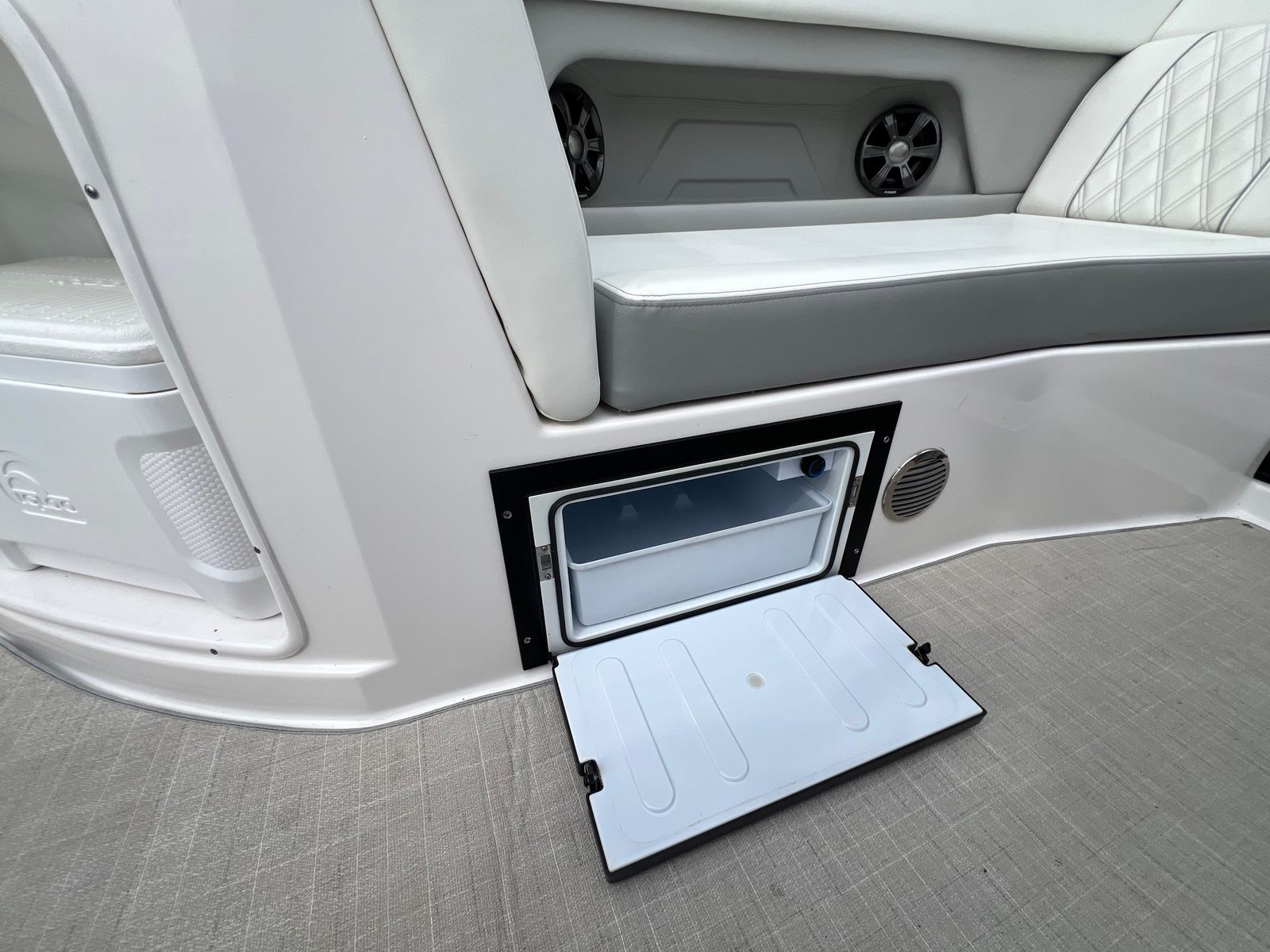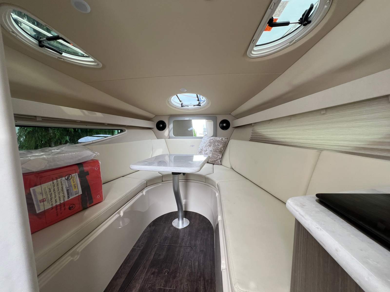 This Regal cruiser boat for sale is as practical as it is stylish. The nearly 29-foot length provides generous storage options for all your gear, making it easy to pack for a day trip or a weekend getaway. The efficient engine and modern electronics contribute to fuel savings and ease of navigation, so you can focus on enjoying your time on the water. Docking is straightforward, thanks to the boat’s responsive handling and well-designed controls.The anchor windlass with an all-chain setup makes it simple to secure your position, whether you are stopping for a swim, a picnic, or an overnight stay. The power tower is perfect for water sports enthusiasts, offering support for wakeboarding, tubing, or simply providing shade on sunny days. The DeaDek swim platform is comfortable and slip-resistant, making it easy to get in and out of the water.