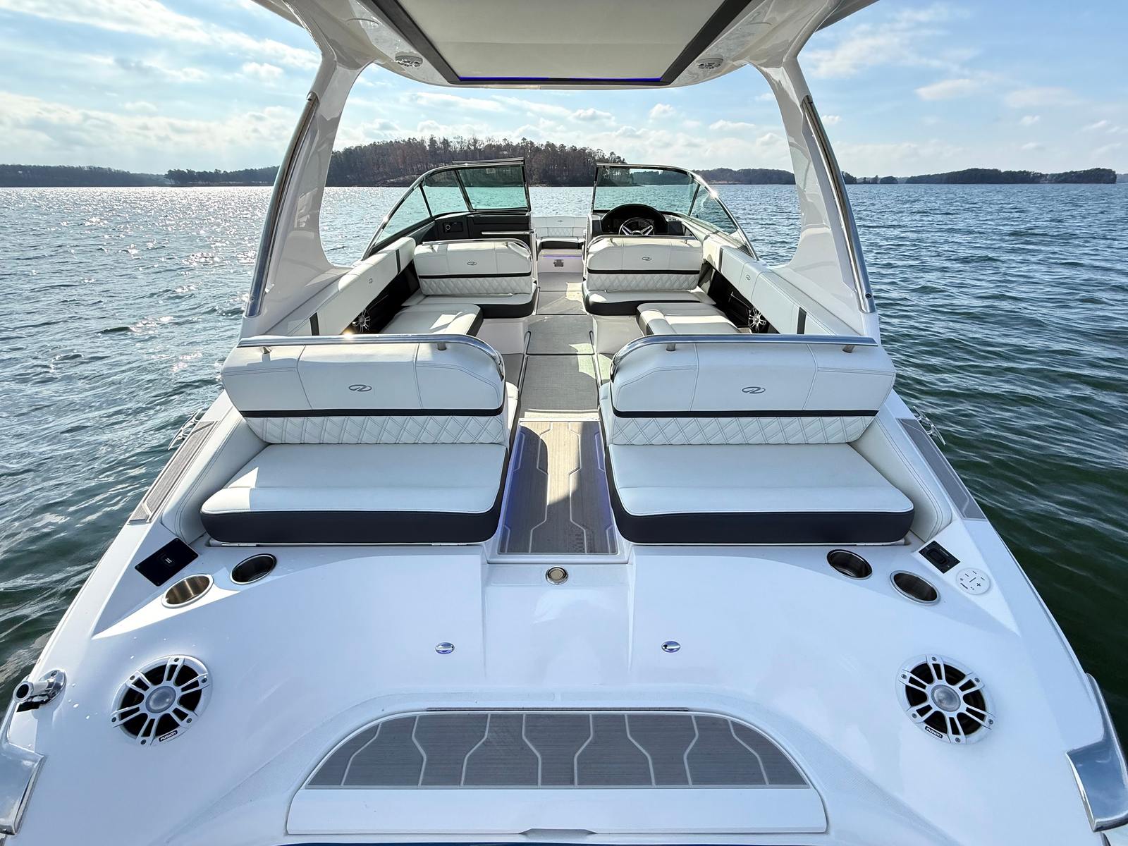 • Technology Package: 110V Battery Charger, Underwater Lights, Electric Helm Seat, Lighting Package, Docking Lights, High-Performance Stereo