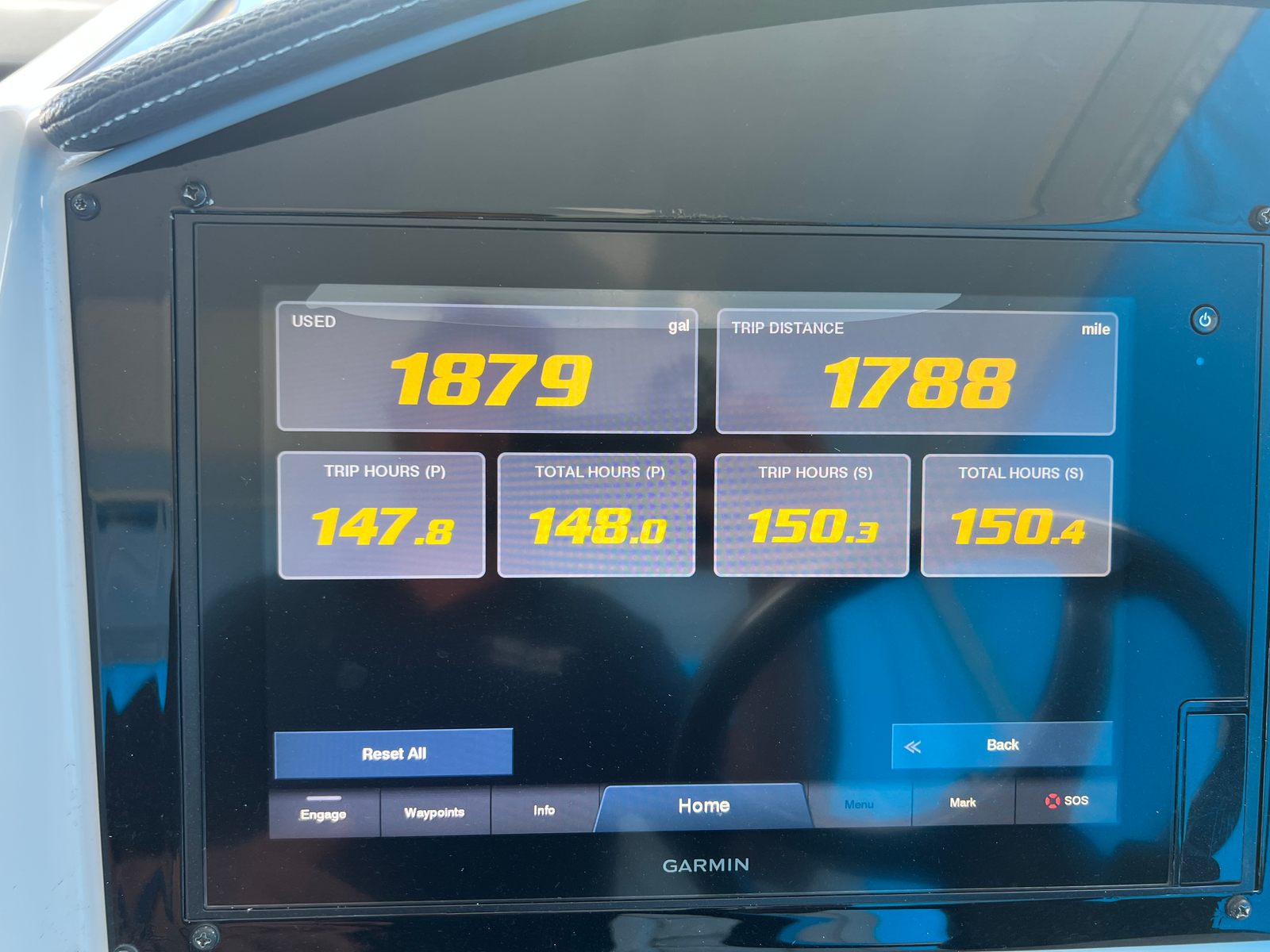 Power and performance are at the heart of the 2020 Regal 33 SAV. Equipped with twin engines, this Center Console is powered by a total of 600 horsepower, ensuring exhilarating acceleration and impressive top speeds. With only 150 engine hours, these engines have plenty of life left, offering reliable and efficient performance for years to come. The dual-engine setup not only provides robust power but also enhances maneuverability and control, making docking and navigating tight spaces a breeze. Whether you are cruising along the coastline, heading out for a day of offshore fishing, or enjoying water sports, the Regal 33 SAV delivers a smooth, responsive ride every time.