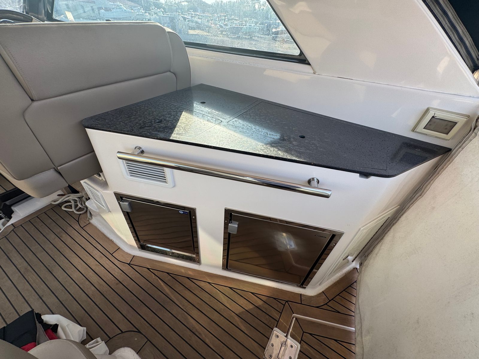 Beyond its impressive style and performance, the Regal 35 Sport Coupe is designed with practical boating in mind. The twin engines not only deliver power but also enhance maneuverability, making docking and close-quarters handling straightforward and stress-free. The thoughtful layout includes ample storage for gear, water toys, and provisions, so you can be prepared for any adventure. Fuel efficiency is another highlight, allowing you to enjoy extended trips without frequent stops at the pump. Whether you’re planning a quick afternoon cruise or a multi-day excursion, this Regal boat for sale is equipped to handle it all with ease.