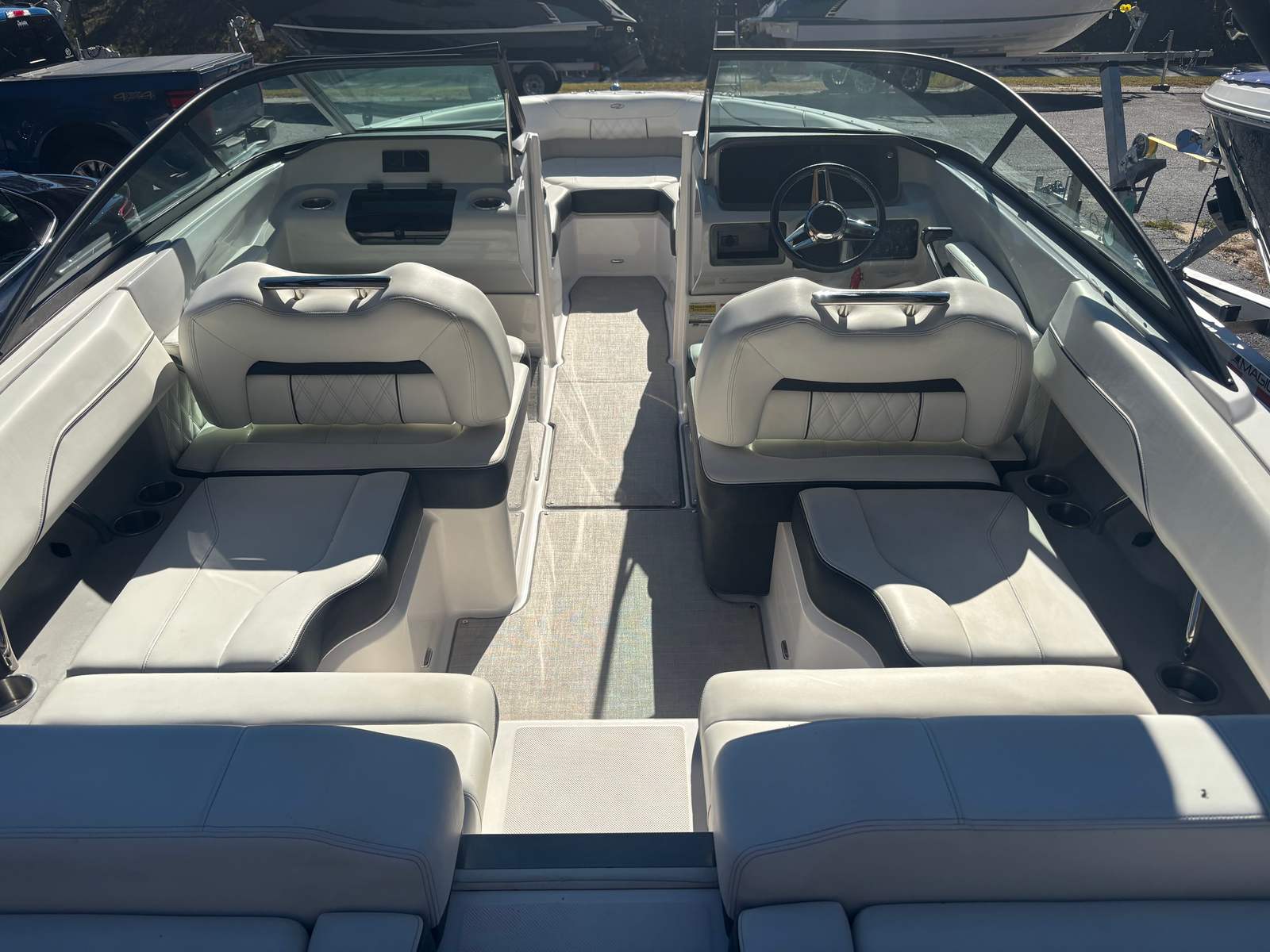 The Regal LS2 Bowrider is packed with features that enhance every aspect of your boating experience. Its spacious cockpit layout provides comfortable seating for your guests, while the open bow design invites relaxation and sun-soaked enjoyment. The boat’s ergonomic helm station ensures intuitive control and visibility, making navigation a breeze. With its 22.33-foot length, the LS2 offers generous deck space for entertaining, lounging, or gearing up for water sports. The modern styling and quality craftsmanship are evident in every detail, from the premium upholstery to the sleek exterior finish.