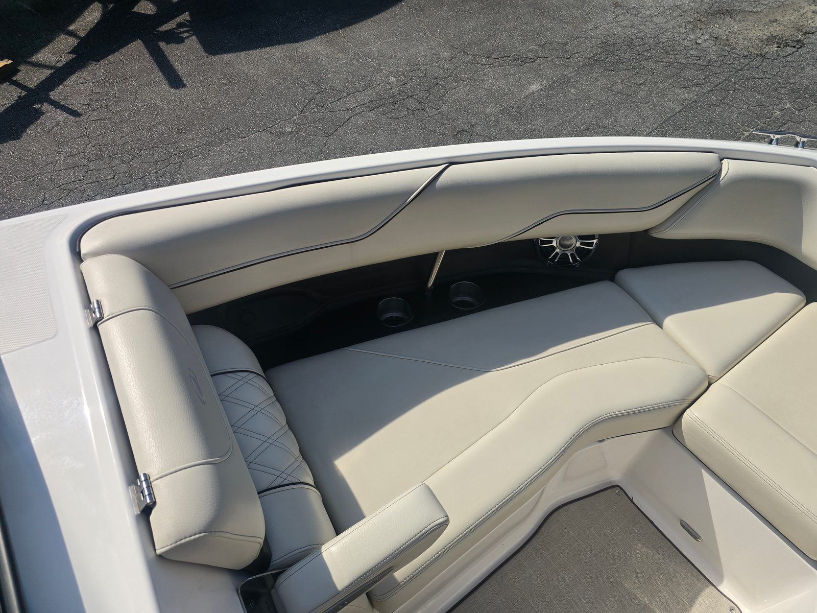 The 2022 Regal LS4 Bowrider is a testament to Regal’s commitment to quality and style. Measuring an impressive 24.42 feet in length, this boat provides ample space for relaxation and recreation. Its sleek profile and contemporary lines are accentuated by the eye-catching Tahiti Beach White hull, complemented by a Mediterranean Blue bootstripe and matching bottom color. The Mediterranean Blue canvas adds a touch of sophistication, while the River Rock accents create a refined and inviting atmosphere onboard. With only 220 engine hours, this used Bowrider remains in excellent condition, offering years of reliable enjoyment ahead.