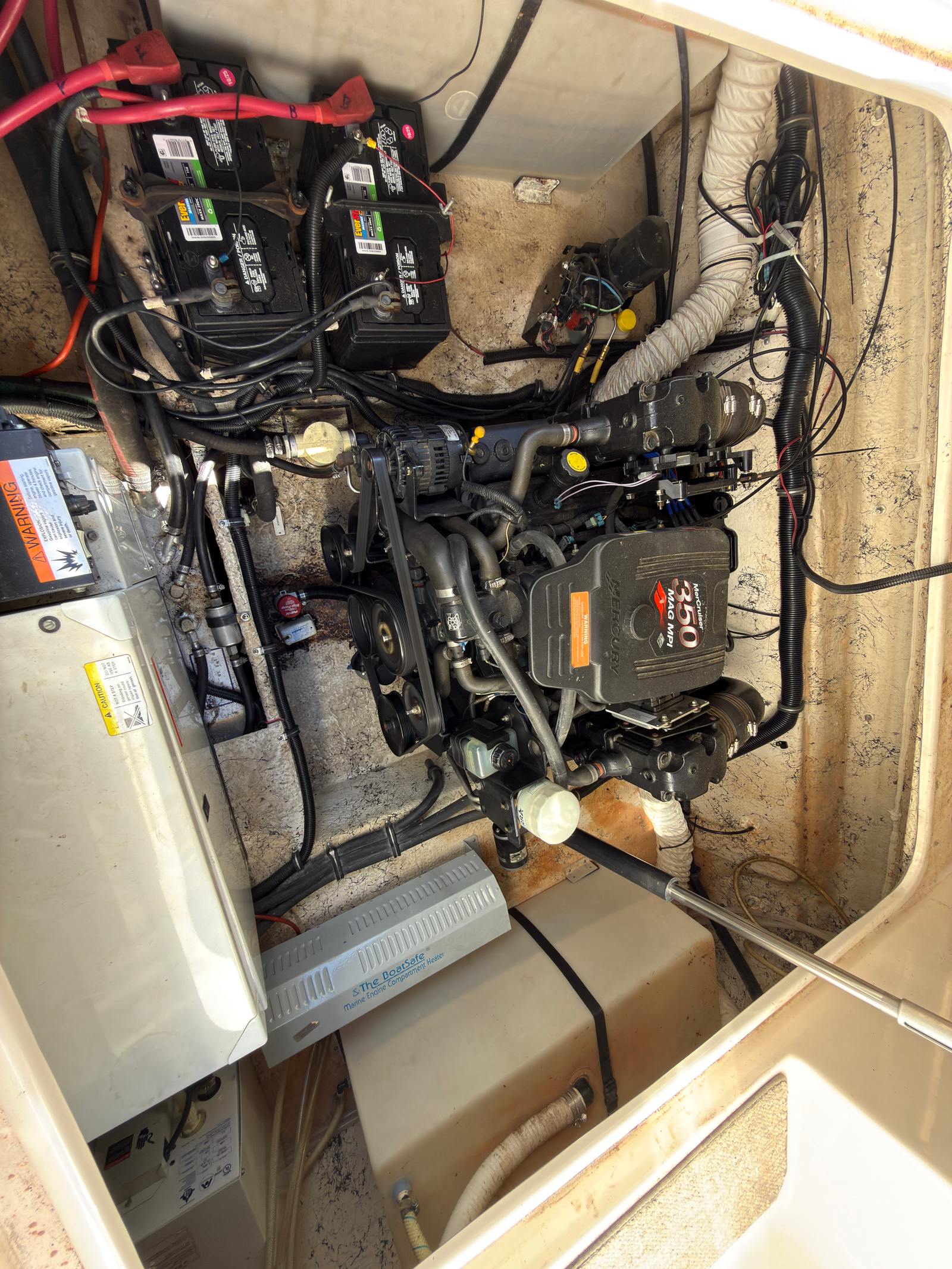 Power comes from a Mercruiser 350 Mag MPI with 348 freshwater hours — well within the prime of its service life. A comprehensive service was just completed covering the engine, drive, and trailer. The matching trailer is road-ready and included in the price.