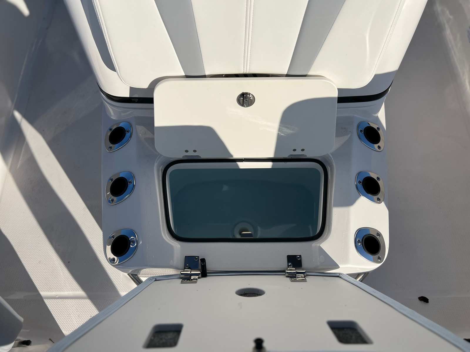 The Robalo 206 Cayman DLX is as practical as it is stylish. Its 20.5-foot length makes it easy to maneuver and dock, even in tight spaces or busy marinas. The efficient engine and dual battery system help keep operating costs low, so you can enjoy more time on the water without worrying about maintenance or fuel expenses. The boat’s thoughtful design includes ample storage for gear, tackle, and personal items, ensuring everything you need is within reach.The Seadek helm mat and powdercoated leaning post provide comfort and durability, making long days on the water more enjoyable. The fold-down windshield and grab rail offer added safety and convenience, while the removable bow seating backrest allows you to switch between fishing and lounging with ease. Whether you’re heading out for a quick afternoon cruise or planning a full day of fishing, the 206 Cayman DLX is equipped to handle all your needs.