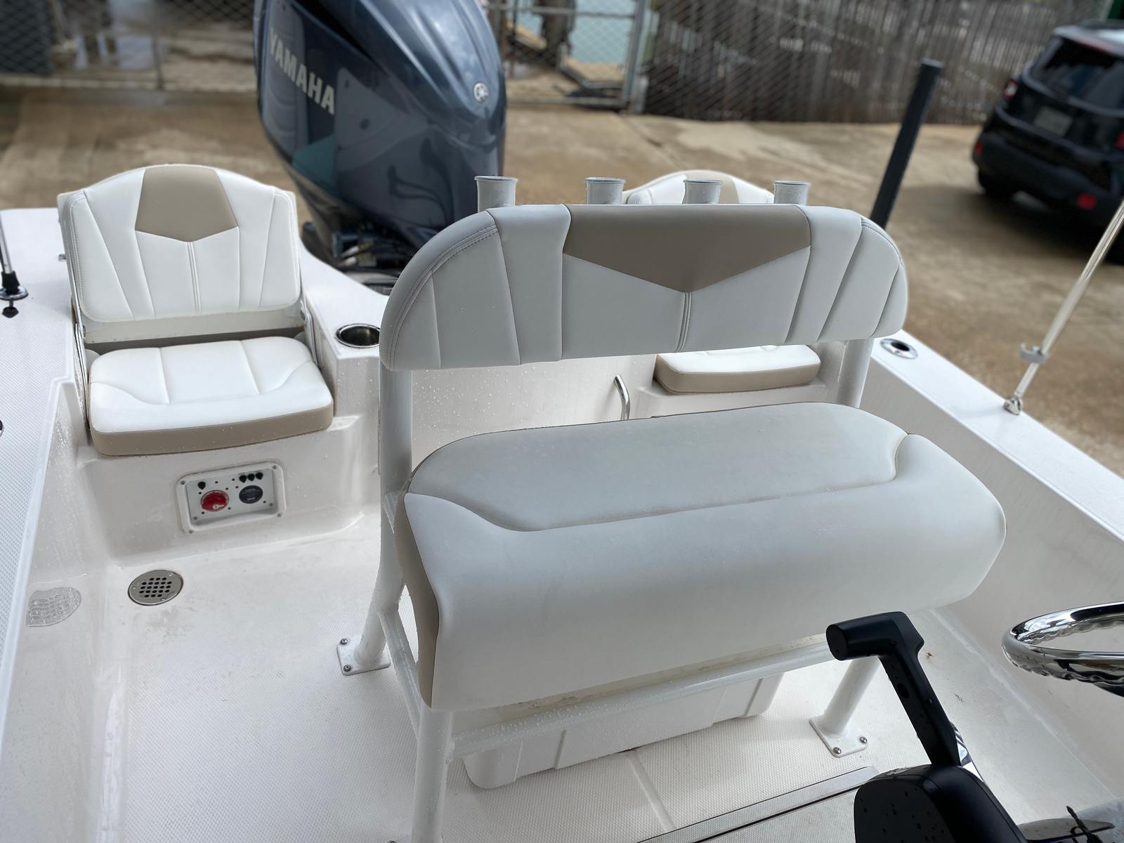 The Robalo 206 Cayman DLX comes loaded with special features that set it apart from other bay boats for sale. The custom supplied trolling motor swap allows for tailored angling experiences, while the Minn Kota Raptor 8FT provides superior shallow water anchoring, keeping you steady and secure when it matters most. The cockpit interior in sand offers a stylish and comfortable environment, complemented by the white powder-coated leaning post for added support during long days on the water.A dual battery system ensures reliable power for all your electronics and accessories, while the Simrad NSS7 EVO3 chartplotter/multifunction display provides advanced navigation and fish-finding capabilities. The Seadek helm mat adds comfort underfoot, reducing fatigue during extended outings. For easy access to the water, the port and starboard dive swim platforms with a boarding ladder on the starboard side make swimming, snorkeling, and reboarding a breeze.Transporting your bay boat is effortless thanks to the upgraded aluminum tandem axle trailer, complete with galvanized wheels and side guides for added durability and convenience.