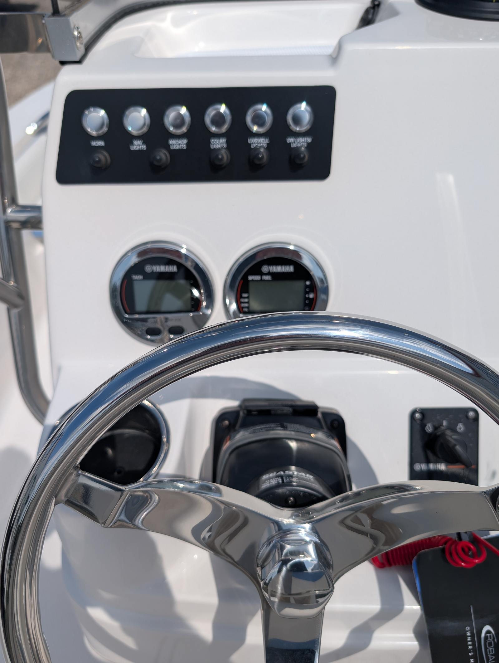 At the heart of this Robalo boat for sale is a powerful Yamaha Four Stroke F150XC engine, delivering 150 horsepower for reliable and efficient performance. The 25-inch shaft and integrated hydraulic steering provide precise control and smooth handling, whether you are navigating tight channels or cruising across open water. The single-engine setup ensures straightforward maintenance and optimal fuel efficiency, allowing you to spend more time enjoying the water and less time at the dock. With this level of performance, the 206 Cayman STD is perfectly suited for both leisurely cruises and high-energy fishing excursions.