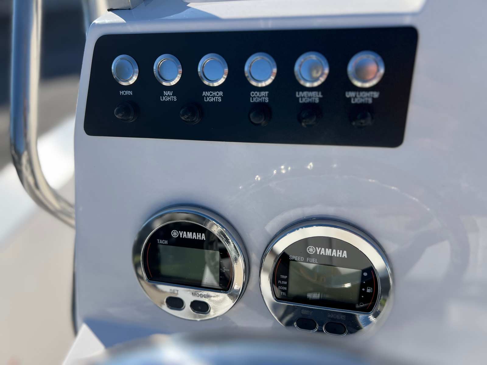 Beyond entertainment and leisure, the practical features of this bay boat make ownership a breeze. The dual battery system ensures you never run out of power, whether you're using navigation tools, lighting, or entertainment systems. The trailer upgrade with an aluminum tandem axle simplifies transportation, making it easy to take your boat to different locations without the hassle of frequent maintenance or worrying about wear and tear. The starboard dive swim platform enhances functionality, allowing you to seamlessly transition from boating to water activities, adding versatility to your adventures.