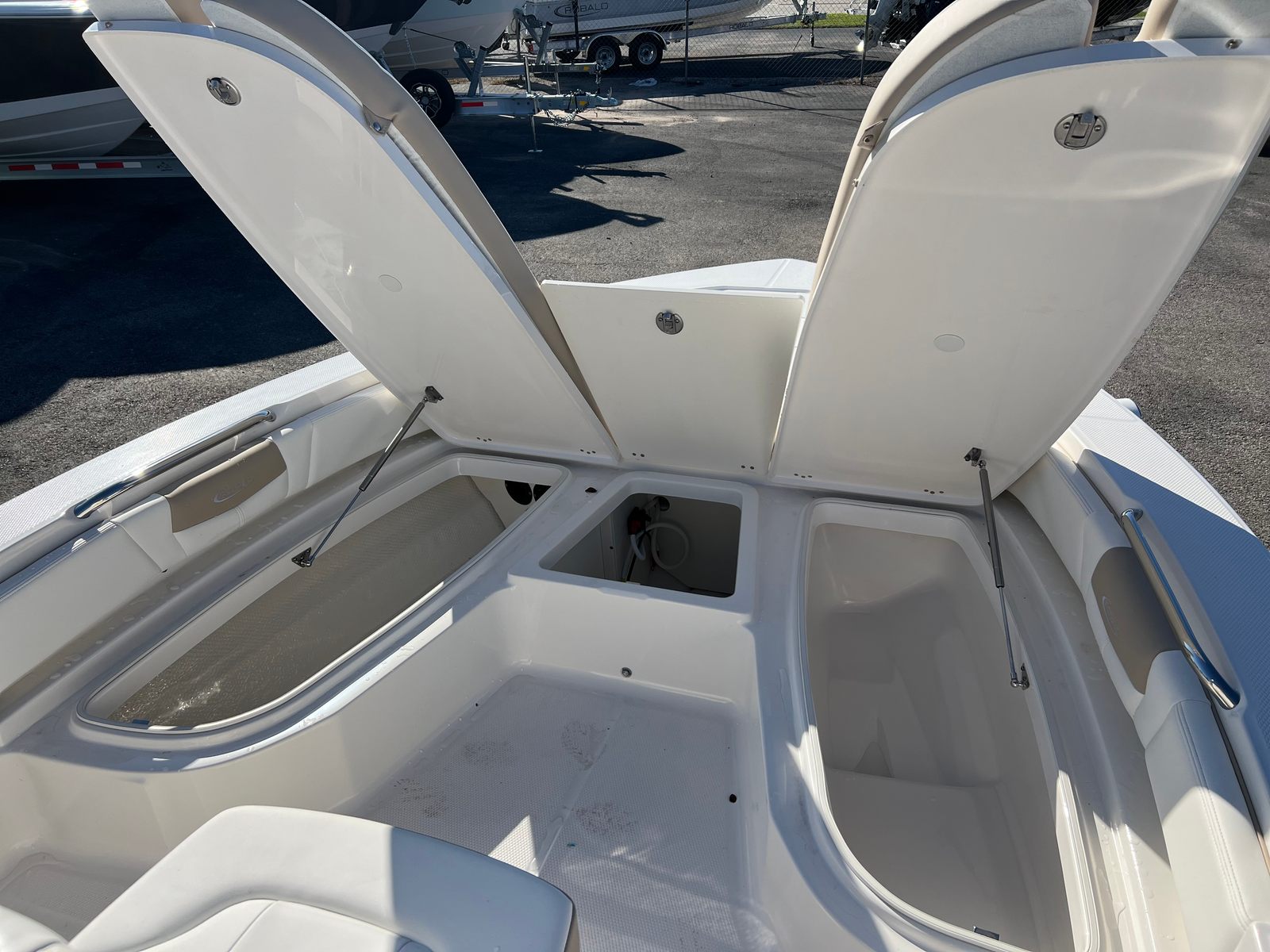 The Robalo 206 Cayman STD is not just about performance and aesthetics; it's built to enhance your overall boating experience. The seadek helm mat adds a touch of luxury to the cockpit, providing a comfortable and stylish surface that complements the boat's interior design. The dual battery system ensures that you have ample power for all your onboard adventures, while the integrated hydraulic steering adds a level of sophistication and ease to your boating maneuvers.
