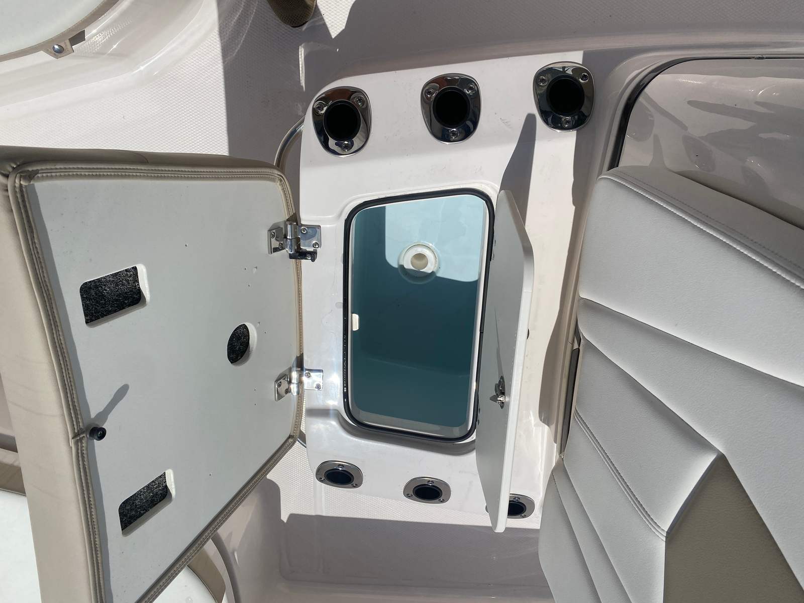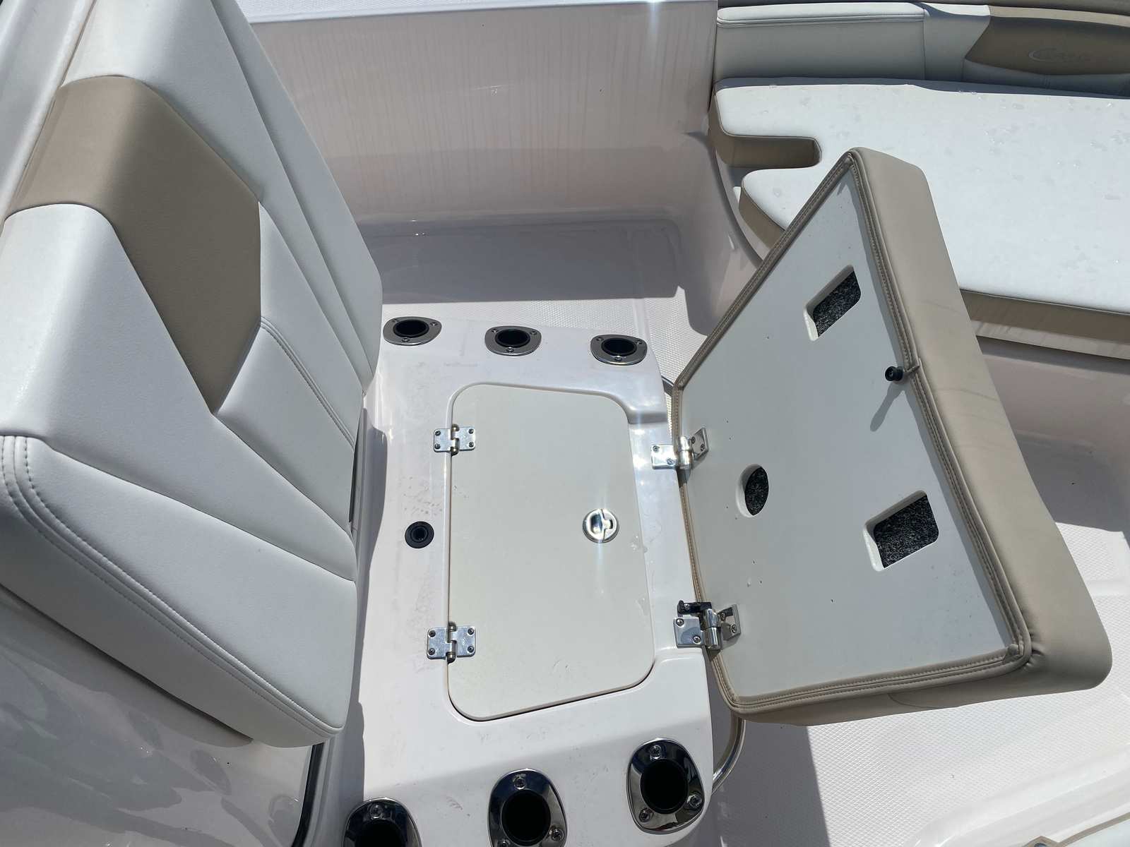 The Robalo 206 Cayman STD is designed with practicality in mind, making it an excellent choice for a wide range of boating activities. The upgraded trailer ensures easy launching and retrieval, while the tandem axle design provides stability and peace of mind during transport. The fold-down console windshield and grab rail offer protection and convenience, especially when navigating through choppy waters or during inclement weather.Storage solutions are thoughtfully integrated throughout the boat, allowing you to keep your gear organized and easily accessible. The starboard dive swim platform with boarding ladder makes it simple to enjoy swimming, snorkeling, or diving adventures. The sand-colored cockpit interior is not only visually appealing but also easy to clean and maintain, ensuring your bay boat stays looking its best season after season.