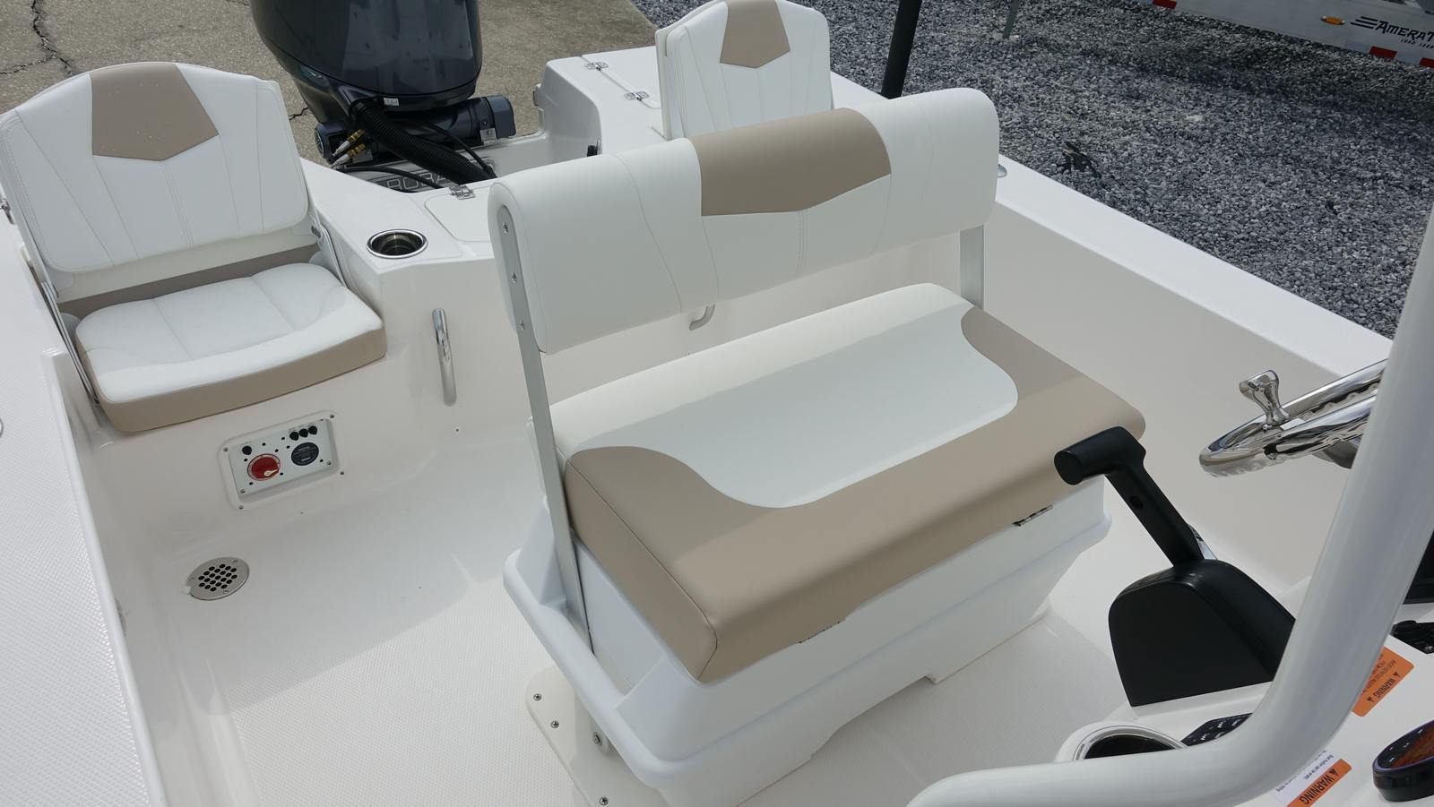 The Robalo 206 Cayman is loaded with special features designed to enhance your boating experience. The white canvas color adds a touch of elegance, while the Ice Blue hull side gelcoat ensures you stand out wherever you go. Enjoy peace of mind with the 5 Year Premium Level Limited Component Warranty, offering exceptional protection and value for your investment.Fishing enthusiasts will appreciate the Minn Kota Riptide trolling motor with dual bank charger, boasting 24V power, 70lb thrust, and a 54" shaft, all controlled by a convenient wireless remote. This setup allows for stealthy approaches and precise positioning, making it easier to land your catch. The removable bow seating backrest adds versatility, providing comfort when cruising and extra space when fishing.Trim tabs with indicators offer enhanced stability and control, letting you adjust your ride for optimal performance in varying conditions. The starboard dive swim platform with boarding ladder makes water access safe and easy, perfect for swimming, snorkeling, or simply cooling off on a hot day. The custom anchor ensures secure mooring, while the T-Top with white powder-coated aluminum and four rod holders provides shade and ample storage for your fishing gear.