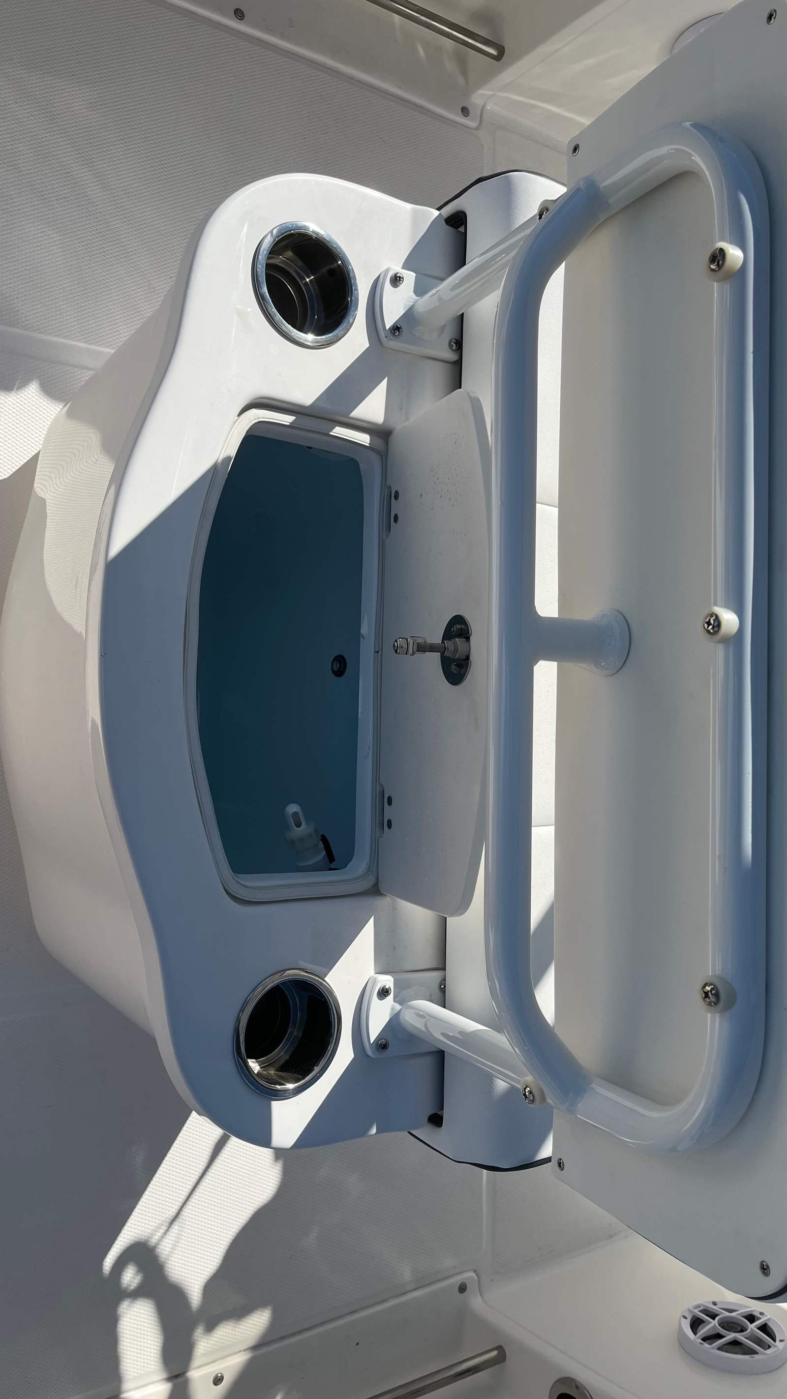 The Robalo 222 CC is packed with special features that enhance both its functionality and comfort. The hard top complete with white powder coating provides shade and protection from the elements, while the hardtop underside gel color in Shark Gray adds a touch of elegance. The standard canvas in black complements the overall design, ensuring durability and style. Removable bow seating backrests offer flexible seating arrangements, allowing you to customize the layout for relaxation or socializing. The custom anchor ensures secure mooring, and the fresh water shower adds convenience after a swim or a day of fishing. With its thoughtful design and premium materials, this Center Console boat is built to withstand the rigors of marine environments while maintaining a luxurious feel.