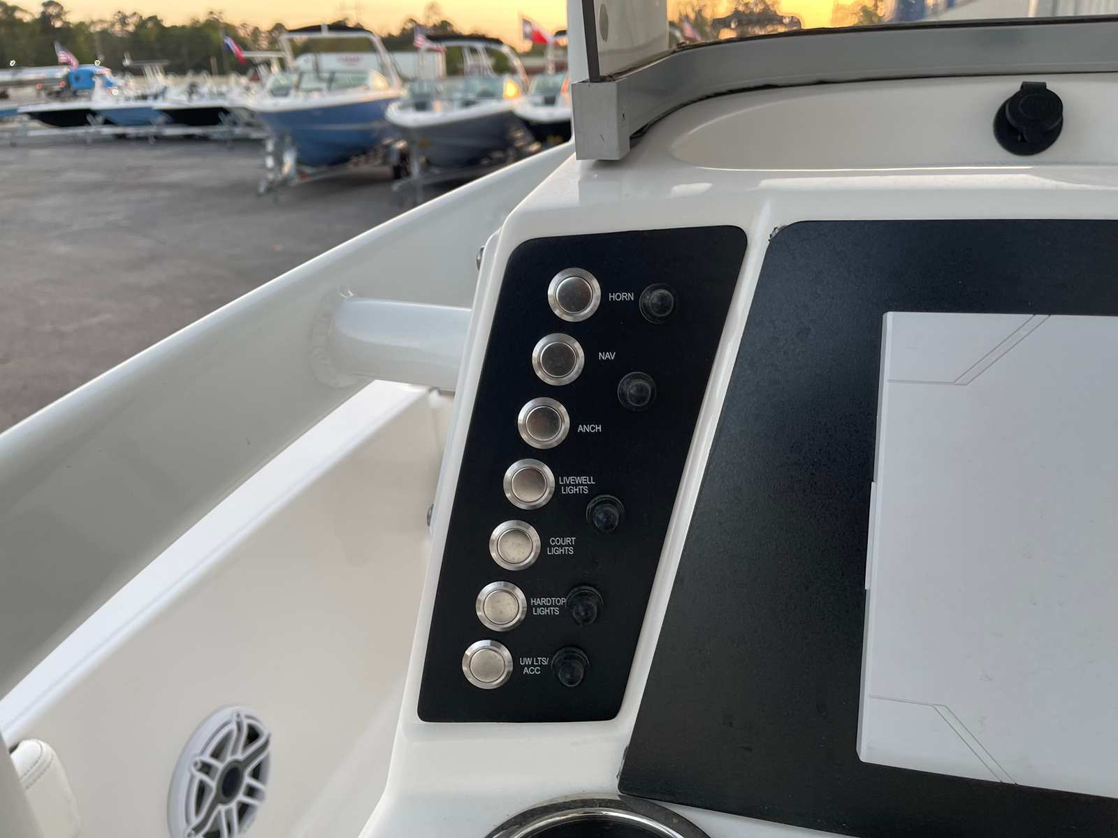 The 2025 Robalo 226 Cayman DLX comes loaded with premium features designed to maximize comfort, convenience, and enjoyment on the water. The hard top, complete with white powder coating, provides ample shade and protection from the elements, while the hardtop underside in Alloy Gray adds a custom touch. The JL Audio Sound System Upgrade transforms your boat into an entertainment hub, delivering crystal-clear sound whether you are anchored at your favorite spot or cruising at speed. The Simrad NSS9 EVO3S offers advanced navigation and fish-finding capabilities, ensuring you are always on course and ready to locate the best fishing spots. The dual battery setup with crossover switch provides peace of mind, ensuring reliable power for all your electronics and accessories. Trim tabs with indicators allow for precise control and a smoother ride, adapting to changing water conditions with ease.