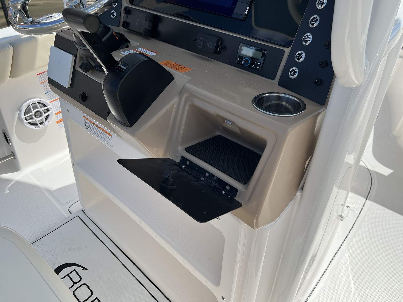 At the heart of the Robalo 232 EX is a powerful Yamaha VF250XB engine, delivering an impressive 250 horsepower. This single-engine setup provides the perfect balance of speed, efficiency, and reliability, making every outing smooth and exhilarating. The Yamaha VF250XB is renowned for its responsive throttle, quiet operation, and fuel efficiency, ensuring you can cover more water with less worry. Whether you are cruising along the coastline, heading to your favorite fishing spot, or enjoying a day of watersports, the 232 EX offers the performance you need to make the most of your time on the water.