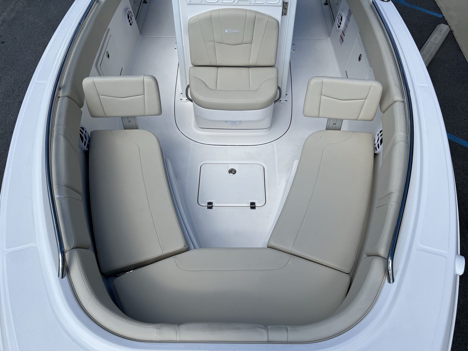 The 2026 Robalo 232 EX Center Console is loaded with features that enhance both its functionality and aesthetic appeal. The hull side gelcoat in Atlas Blue gives the boat a striking and modern look, while the cockpit interior in Dune provides a comfortable and inviting atmosphere for all passengers. The canvas color, finished in black (if equipped), adds a touch of elegance and durability, perfectly complementing the overall design.A standout feature of this model is the standard hard top, which is complete with a powder-coated white finish for added durability and style. The hardtop underside gel color in Atlas Blue ties the design together, creating a cohesive and eye-catching appearance. For added protection and convenience, the boat includes a leaning post cover and console cover, ensuring your investment stays in pristine condition.Navigation and control are made effortless with the Simrad NSS4/12, a state-of-the-art marine electronics system that provides clear, intuitive access to navigation, fish finding, and system monitoring. The inclusion of trim tabs with indicators allows for precise handling and stability, giving you confidence in a variety of water conditions.