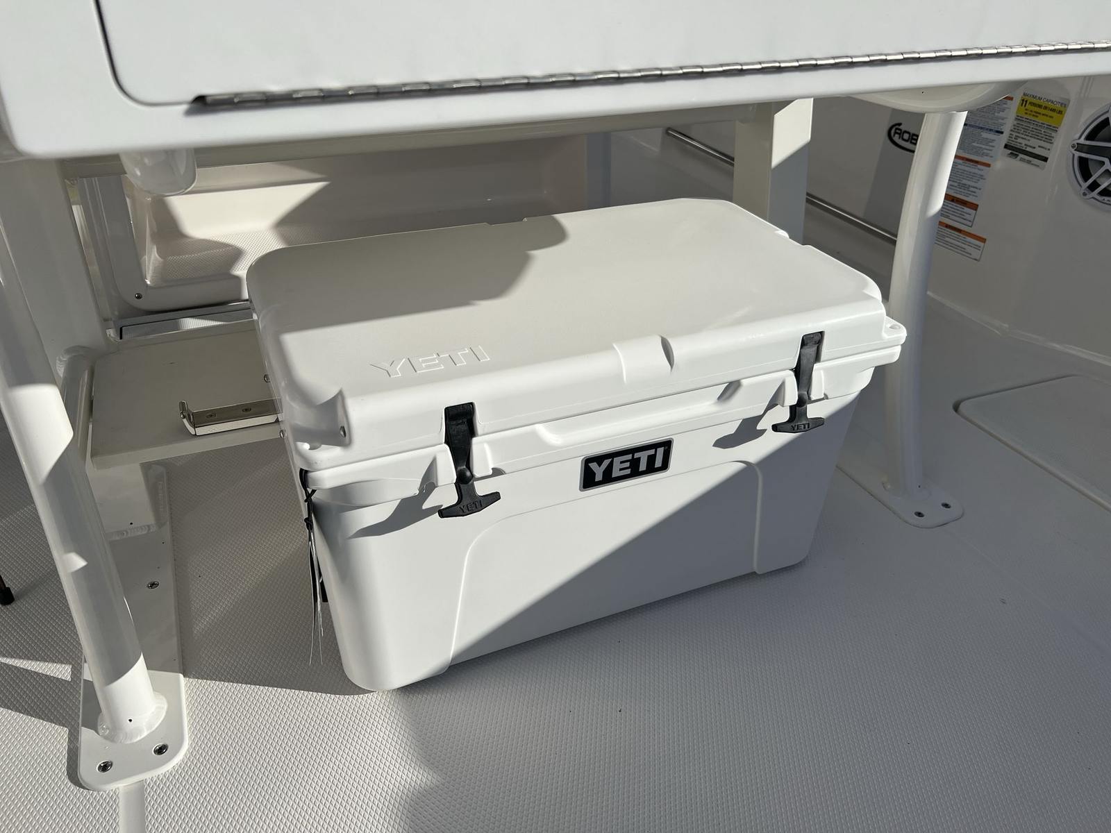 The Robalo 250 CC is packed with premium features that elevate your boating experience. The Standard Hard Top Complete and Leaning Post provide shade and comfort, allowing you to enjoy long days on the water without worrying about the sun. The Hardtop Underside Gel Color in Shark Gray adds a touch of elegance and continuity to the boat’s design. Navigation and electronics are top-notch, thanks to the Twin Simrad NSS12 EVO3S displays and the Simrad NMEA 2000 Starter Package with Audio Interface, ensuring you have all the information and connectivity you need at your fingertips. Communication is seamless with the integrated VHF Radio, while the JL Audio Sound System Upgrade delivers crystal-clear sound, perfect for entertaining guests or relaxing with your favorite tunes. For anglers, the pre-wire for a trolling motor offers added convenience and flexibility for fishing excursions.