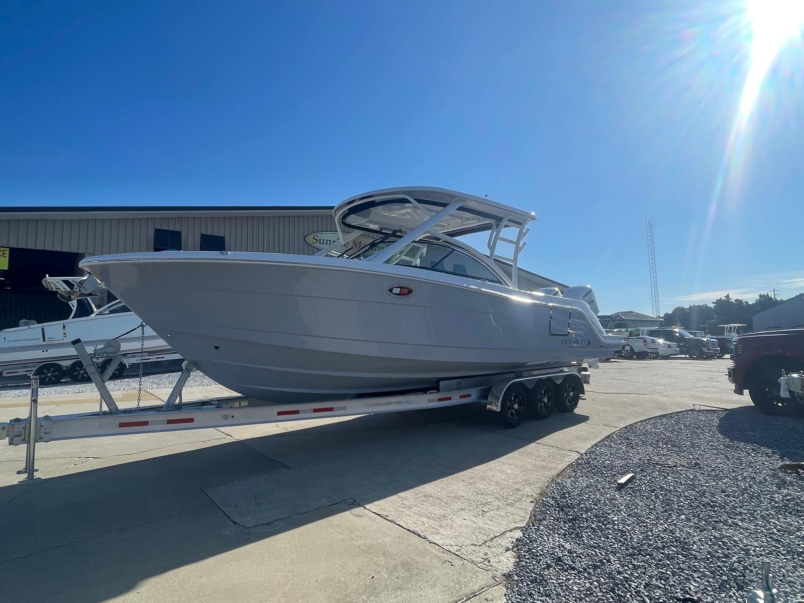 The 2025 Robalo 317 DC is a 31-foot dual console boat that embodies the latest in marine innovation and craftsmanship. Built for those who demand excellence, this new Robalo boat for sale offers ample space, comfort, and functionality for a wide range of boating activities. Whether you are planning a day of fishing, cruising with family and friends, or simply relaxing on the water, the Robalo 317 DC is engineered to provide a superior boating experience. Its modern design, highlighted by the Solid Hull Alloy Gray Gel Coat, ensures you will turn heads at every marina and on every open water adventure.