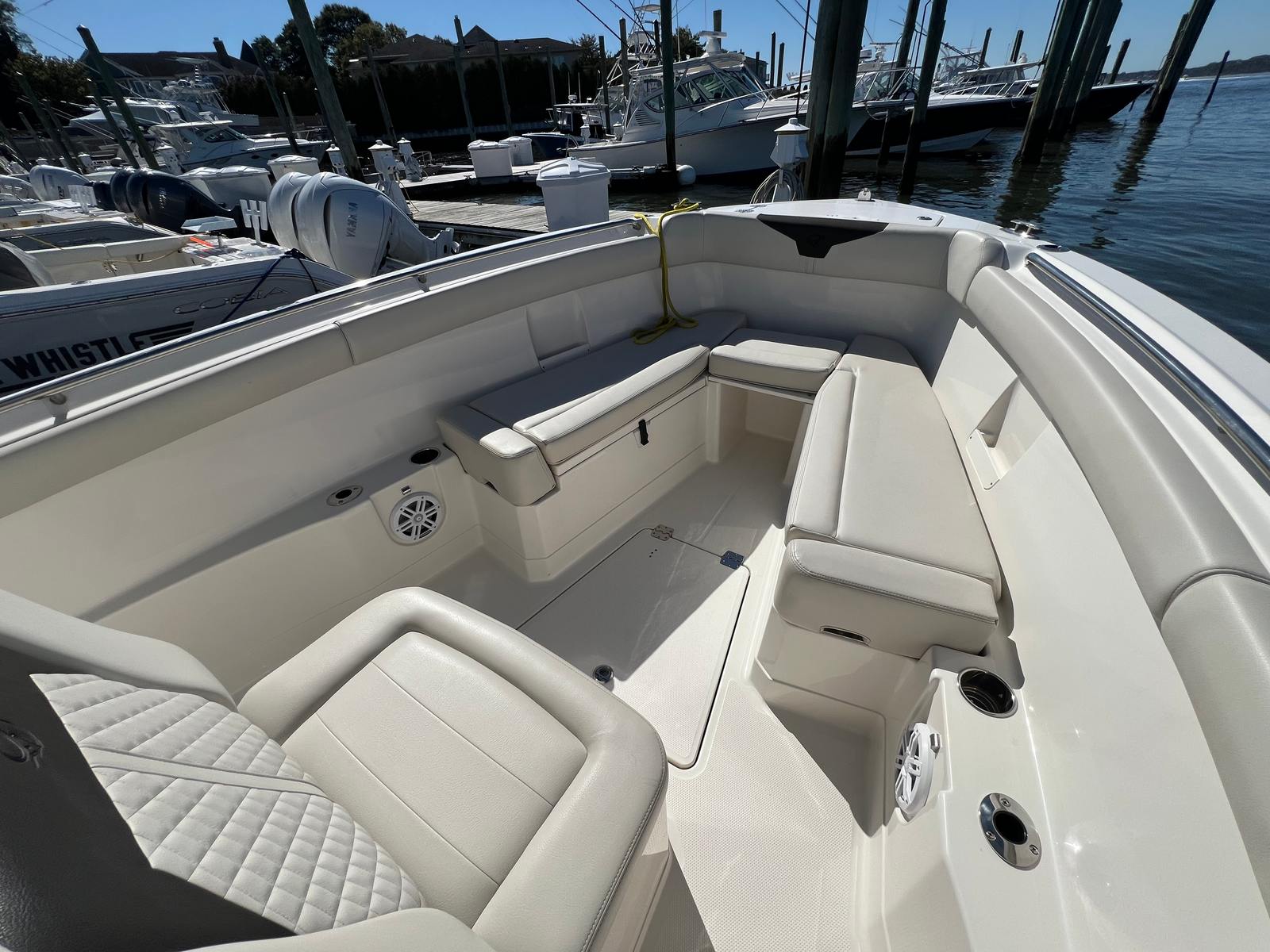 Equipped with twin engines, this Sailfish 272 CC boasts a combined 400 horsepower, providing plenty of muscle for high-speed runs, quick acceleration, and reliable handling. With 585 engine hours, these motors have proven their durability and are ready for many more seasons of fun. The dual-engine setup ensures enhanced maneuverability and control, making docking and navigating tight spaces easier than ever. Whether you’re chasing the horizon or exploring hidden coves, the power and reliability of this Center Console boat for sale will keep you confidently in command.