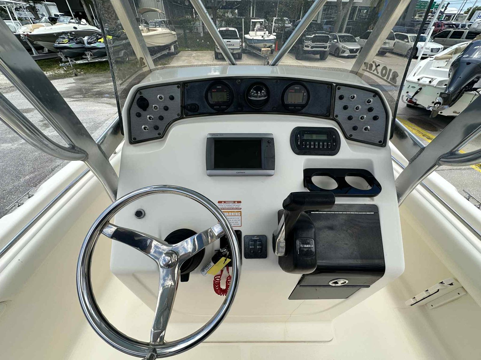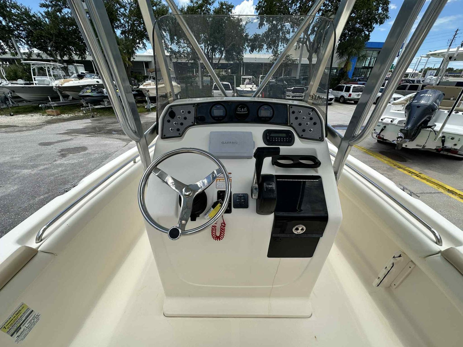• Console with windshield and stainless steel grab rail