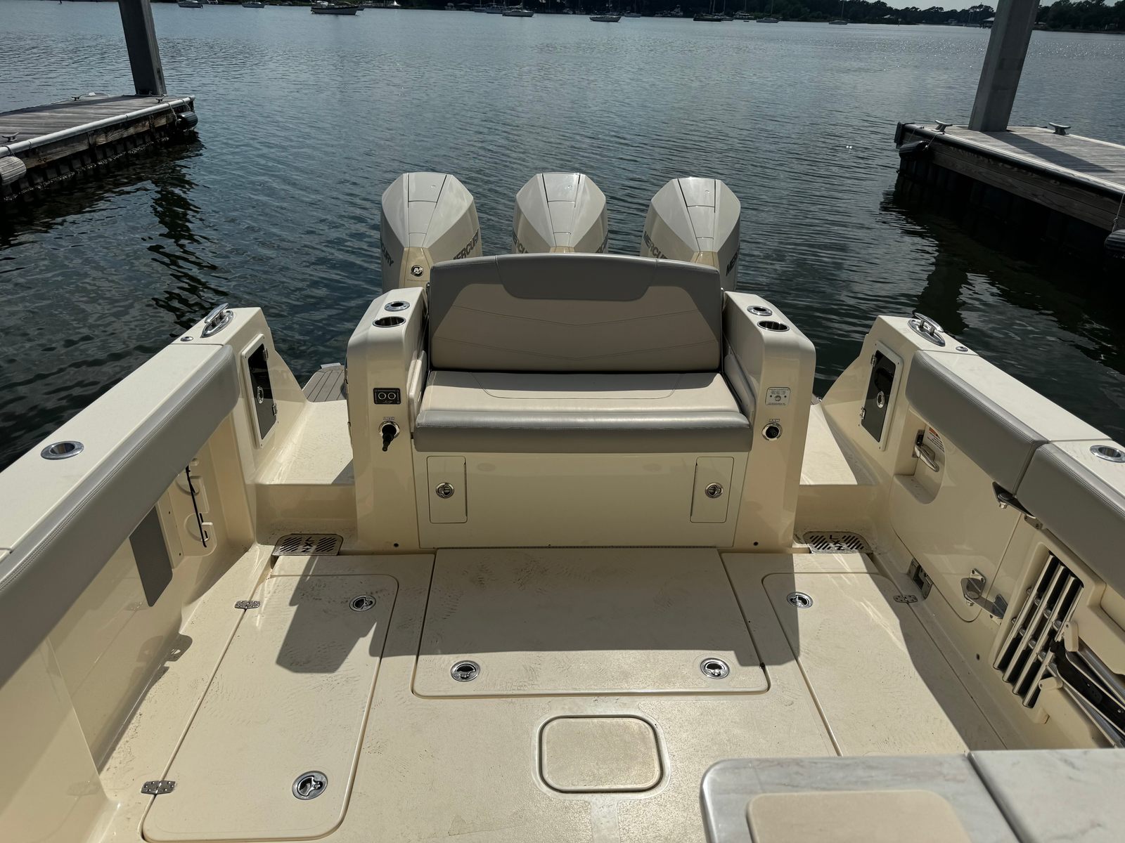 Under the hood, the Scout 350 LXZ is powered by three robust engines, delivering a combined 900 horsepower. With 400 engine hours, these motors have proven their reliability and are ready for many more seasons of smooth operation. The triple-engine setup ensures exhilarating acceleration, impressive top speeds, and exceptional handling in a variety of conditions. Whether you’re navigating choppy waters or enjoying a leisurely cruise, the Scout 350 LXZ offers a responsive and stable ride that inspires confidence. The advanced engineering behind this Center Console boat for sale guarantees efficient fuel consumption and reduced maintenance, making it a smart choice for those who value both performance and practicality.