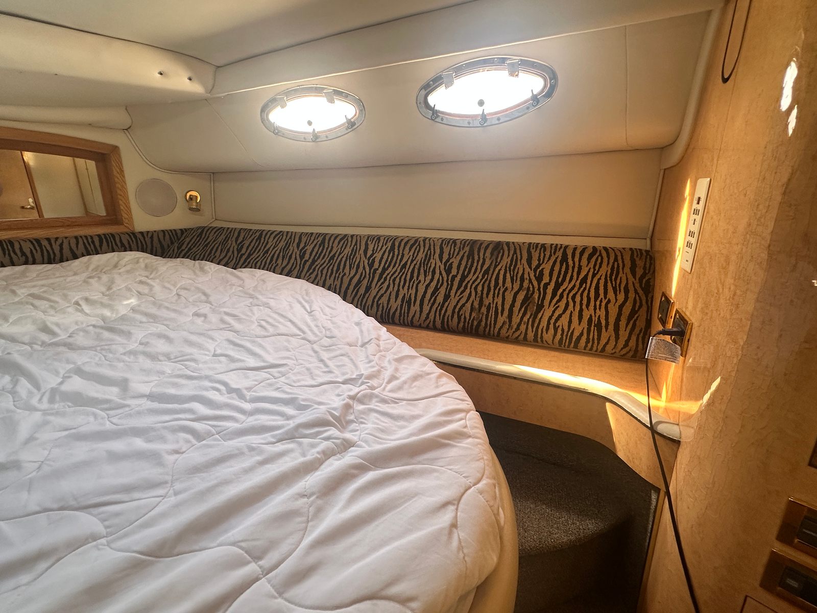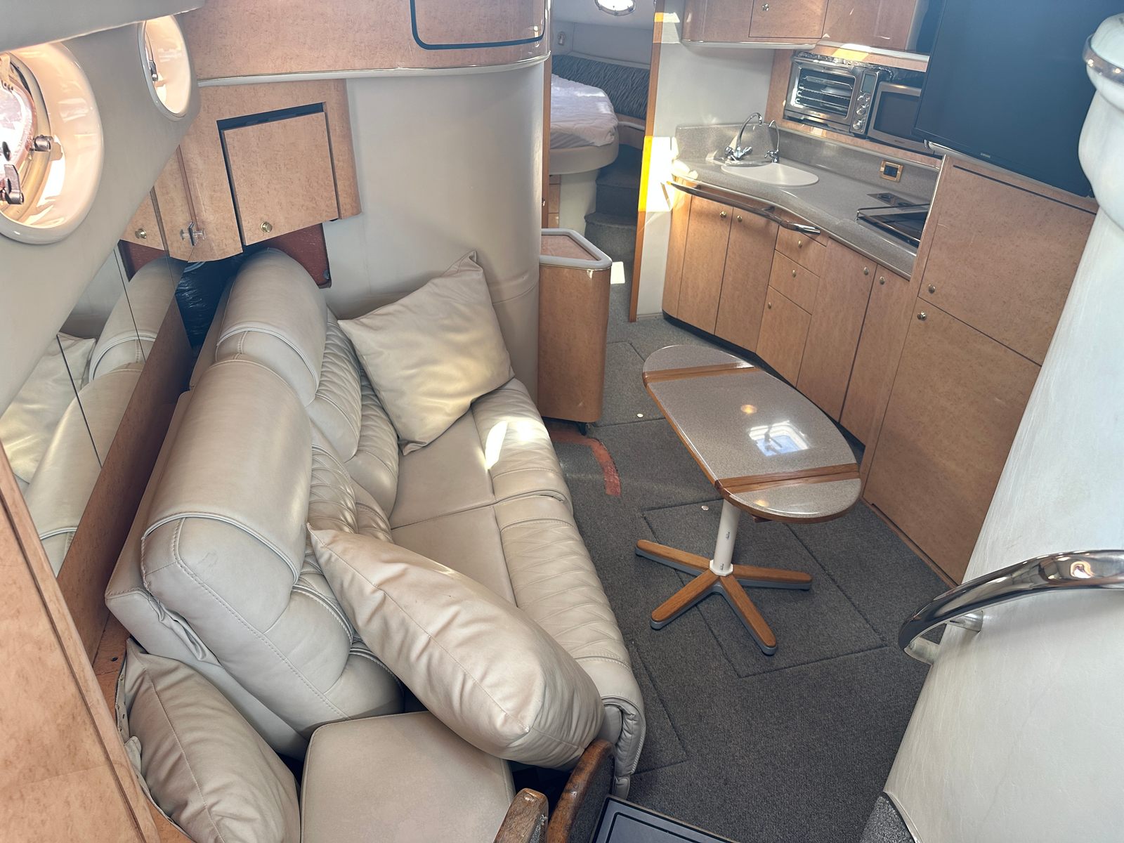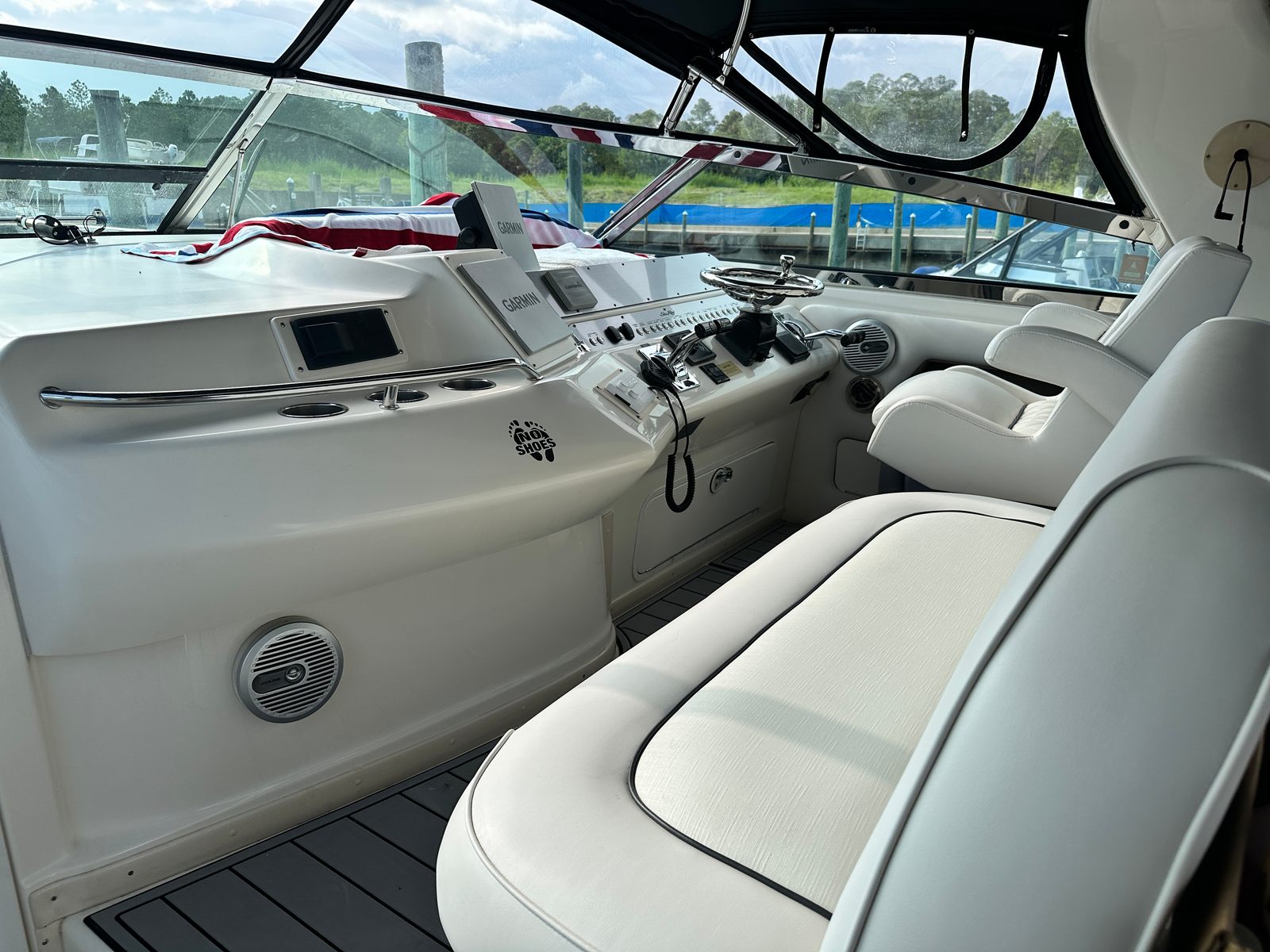 This cruiser boat for sale is designed with practicality in mind. Its generous length provides plenty of storage options for gear, supplies, and personal items, making it easy to stay organized during longer trips. The twin-engine configuration not only enhances performance but also simplifies docking and maneuvering, giving you confidence in any marina or harbor. Fuel efficiency is another key advantage, allowing you to enjoy extended outings without frequent stops for refueling. The Sundancer 450’s thoughtful layout and reliable systems make ownership hassle-free, so you can focus on enjoying your time on the water.