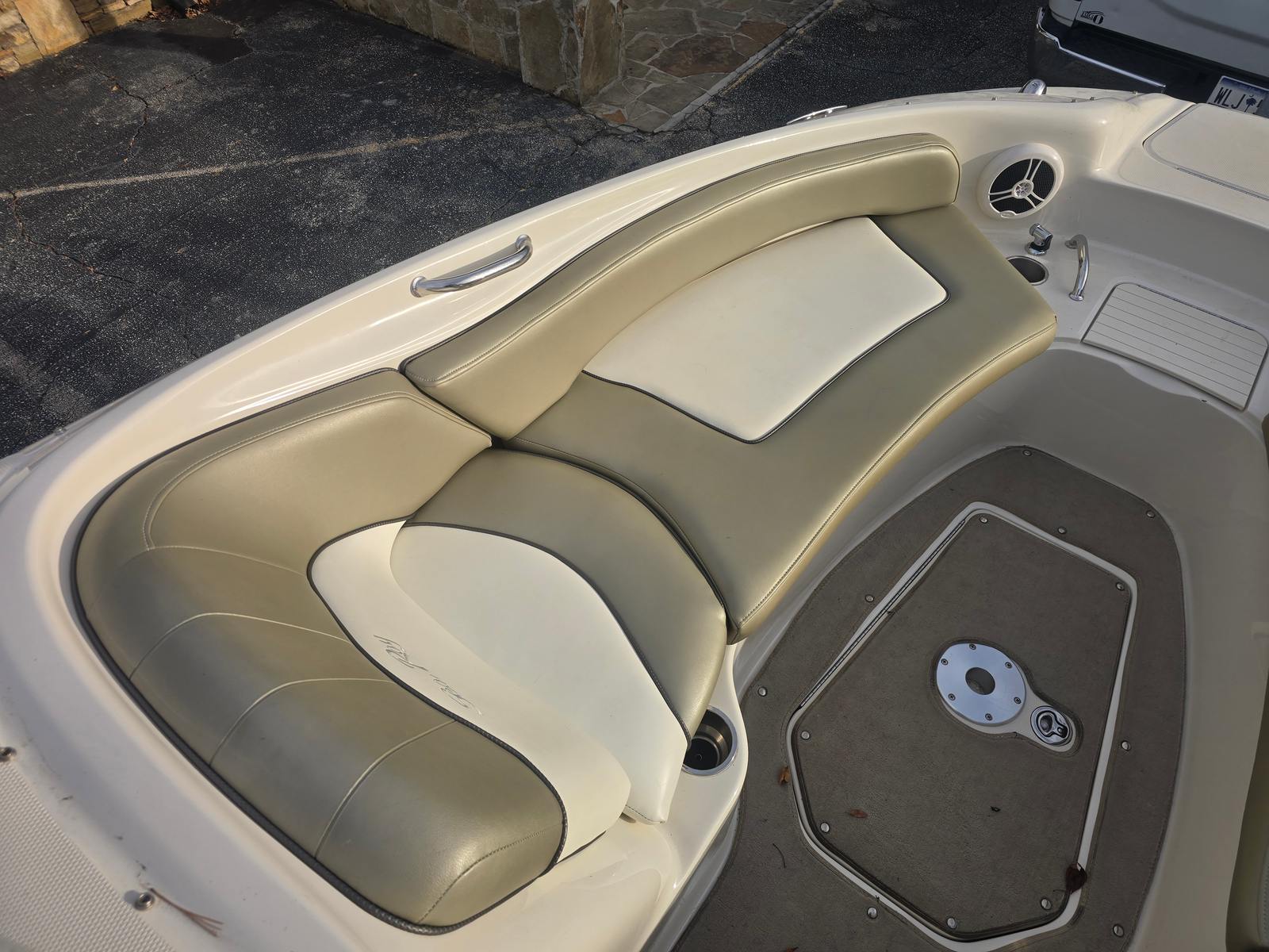 Under the hood, the 2006 Sea Ray Sundeck 240 is powered by a single robust engine delivering an impressive 300 horsepower. With only 460 engine hours, this deckboat has plenty of life left for countless days on the water. The powerful engine ensures smooth acceleration, responsive handling, and the ability to cruise comfortably at a variety of speeds. Whether you are towing water toys, exploring new coves, or simply enjoying a leisurely cruise, the Sundeck 240’s performance capabilities make every outing a pleasure. The combination of power and efficiency makes this Sea Ray boat for sale a top choice for those who value both excitement and reliability.