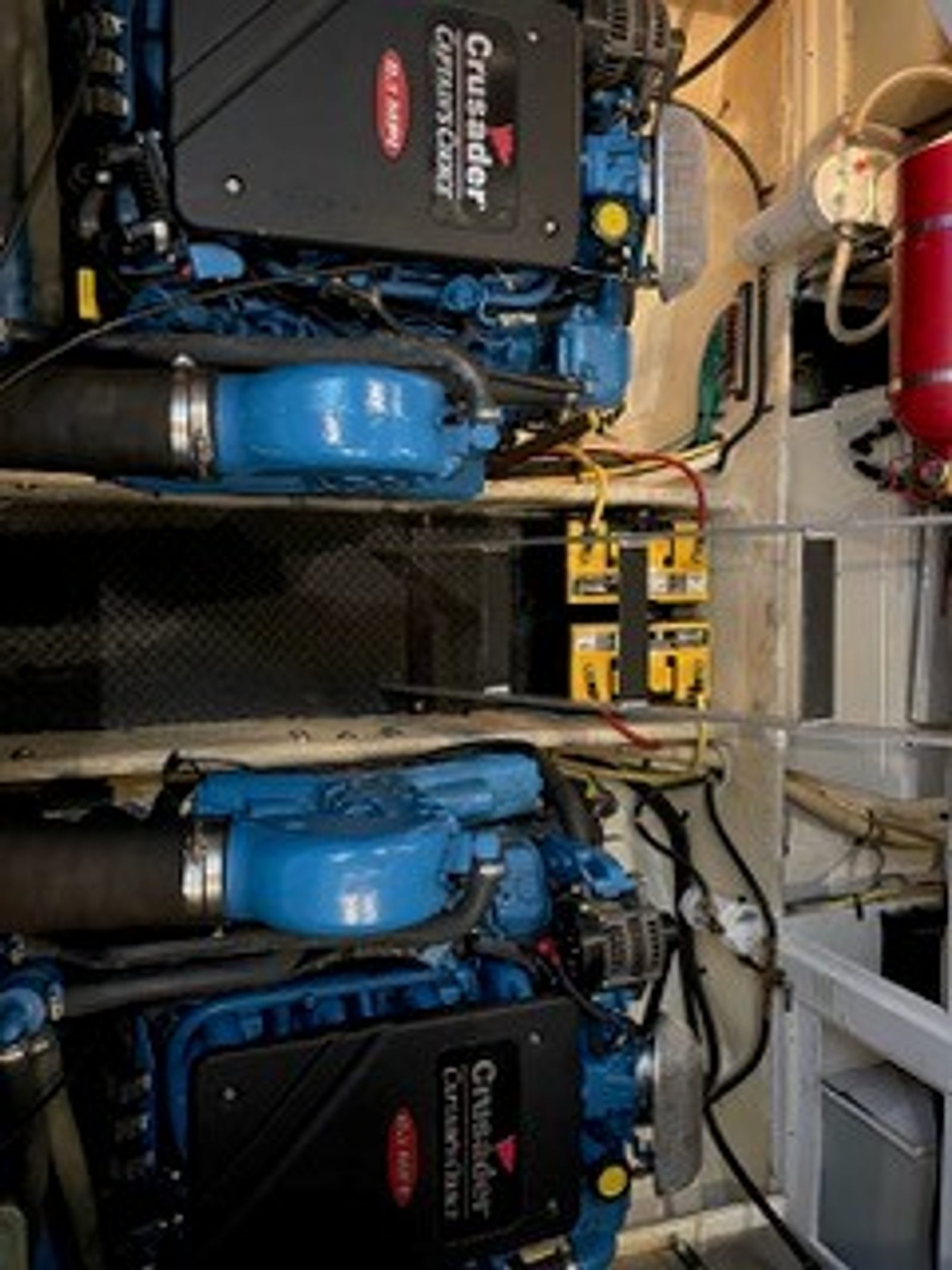 • Five house and engine batteries, external sea strainers, three CO2 alarms, and a remote spotlight