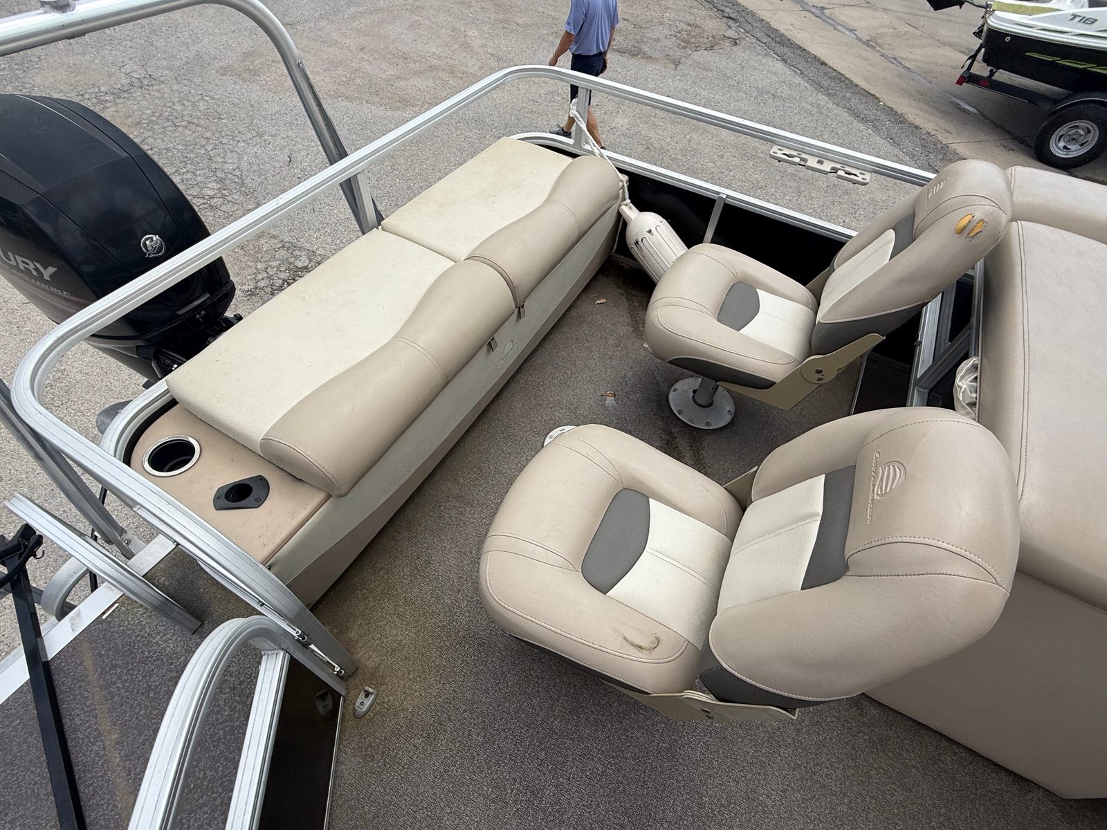 The Sun Tracker Fishin Barge 24 DLX is designed with practicality in mind. Its spacious layout offers plenty of storage options for fishing gear, water toys, and personal items, keeping the deck clutter-free and organized. The pontoon’s design makes docking and maneuvering a breeze, even for those new to boating. Fuel efficiency is another key benefit, allowing you to enjoy longer trips without frequent refueling stops.This used pontoon boat is also easy to maintain, thanks to its durable construction and quality components. Routine cleaning and upkeep are straightforward, so you can spend more time enjoying the water and less time on chores. The Fishin Barge 24 DLX is a smart investment for anyone seeking a reliable, low-maintenance boat that delivers exceptional value and enjoyment.